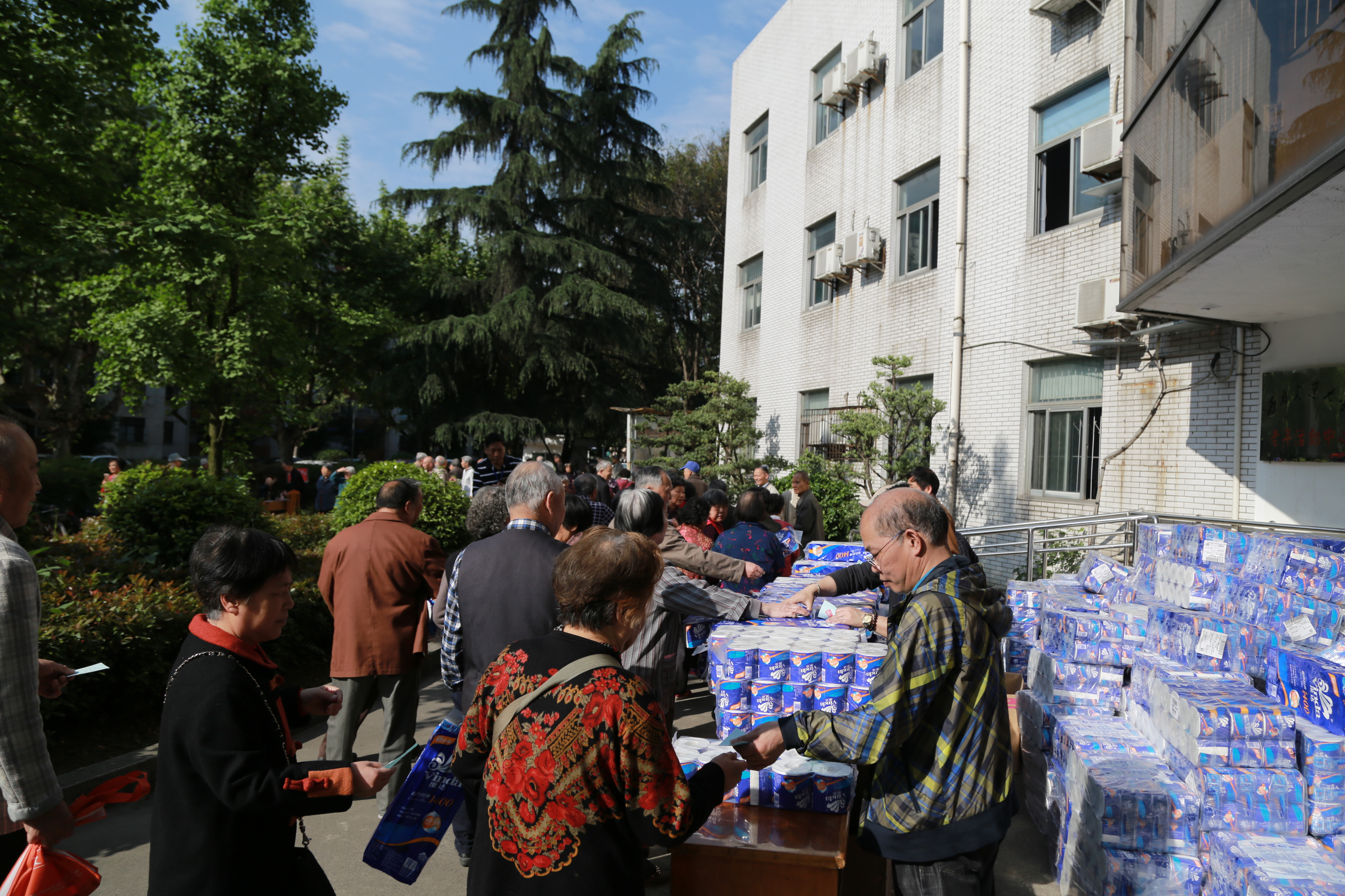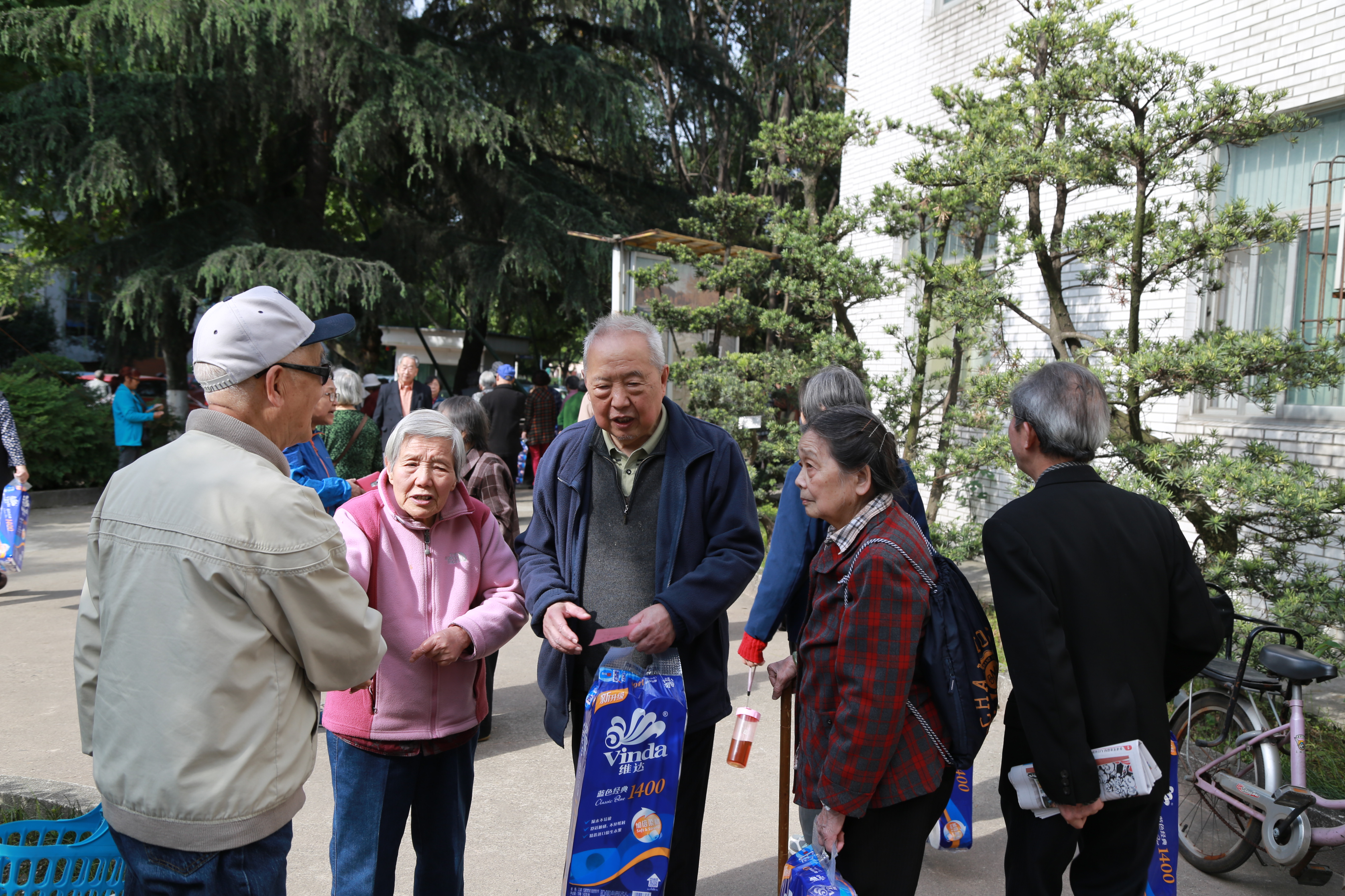 这次健身走活动从晚晴苑出发,沿着唐臣路至镜湖,经图书馆到网球场,返回到晚晴苑走一圈,全程约3公里。沿途中不时有老年志愿者为参加健身走的老同志进行路线指引和盖章。一路走来,老同志们有说有笑、欢声笑语此起彼伏,阳光洒在他们的银发上,显得神采奕奕。他们到达目的地后每人凭健身走票领取一份纪念品。还有近三百名80岁以上的老同志和行动不便的老人,他们有的杵着拐杖,有的坐着轮椅,有的在亲人的搀扶下也来到了晚晴苑,他们虽然不能长距离的行走,但是他们同样有参加活动的热情,同样收获了一份纪念品。老同志们在此次活动中相互祝福,互拉家常,互祝身体健康;同时感叹过上了好的生活。奖品领取后,老同志们还依依不舍,大家聚在一起畅谈十八大以来我国在各方面取得的巨大成就,感叹改革开放、科技发展给人民生活带来日新月异的变化。这次参加健身走活动的老人,不仅零距离接触到大自然,亲近了大自然,又锻炼了身体,增进了情感交流,还得到了礼物,真是一举多得呀!