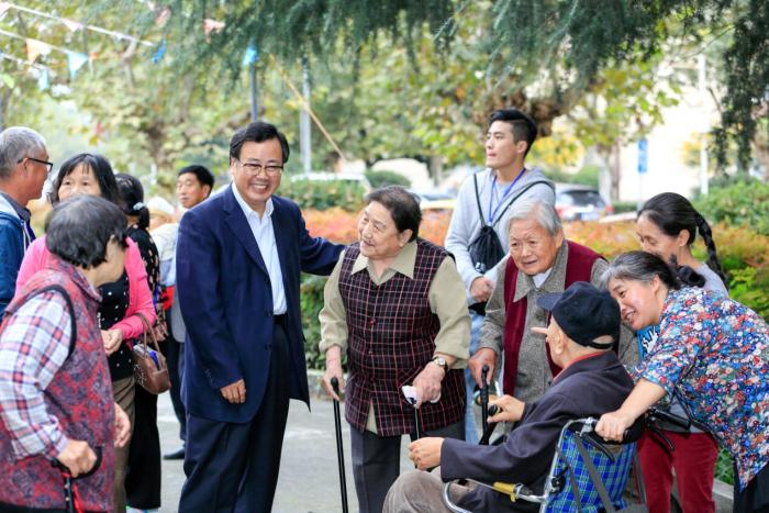 10月9日上午九点,晚晴苑彩旗飘扬,热闹非凡,和暖的阳光映照在每个离退休老同志的脸上,喜悦之情溢于言表。离退处组织的趣味比赛活动如火如荼地开展起来了。学校党委王顺洪书记、沈火明常委一行亲临晚晴苑,王书记、沈常委与老党员、老教授、老同志一一握手,代表学校向老同志致以亲切的问候和节日的祝福,并亲切地询问了老同志们的身体健康情况,了解大家的生活状况,叮嘱大家要注意身体:“老同志是学校的宝贵财富,大家为学校发展做出了贡献,一定要保重身体!”。此外,王书记还对老同志介绍了学校近年来的发展成就及今后的工作思路,并希望老同志们继续关心与支持学校的发展,为学校更好更快的发展建言献策。王书记看着老同志们对本次重阳节活动所表现出的极大热情,非常高兴。他特别嘱咐郭书和处长、刘建平书记等离退处领导,多组织一些这样的活动,学校一定会在经费上大力支持老年活动。