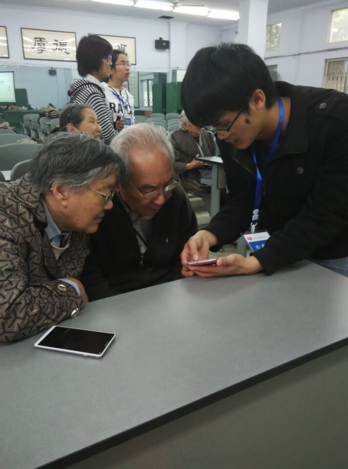 智能手机已成为现代人不可或缺的通讯工具,随着手机不断的升级换代,人们的沟通交流方式也发生着很大的改变。为了丰富离退休教职工的精神文化生活,让老同志们也能像年轻人一样通过手机上网、玩微信、传照片、查询资料等,享受现代科技带来的生活便利,离退处组织了尊老敬老协会的大学生志愿者,在2015年3月至5月份,利用周末时间,在老年大学为我校离退休教职工开展免费“手机课堂”培训服务,其内容八讲包括:微信、QQ、编辑短信、存储联系人、音乐和视频、手机软件管理、手机地图、手机浏览器、手机照片导入电脑、照片微处理等操作技能。