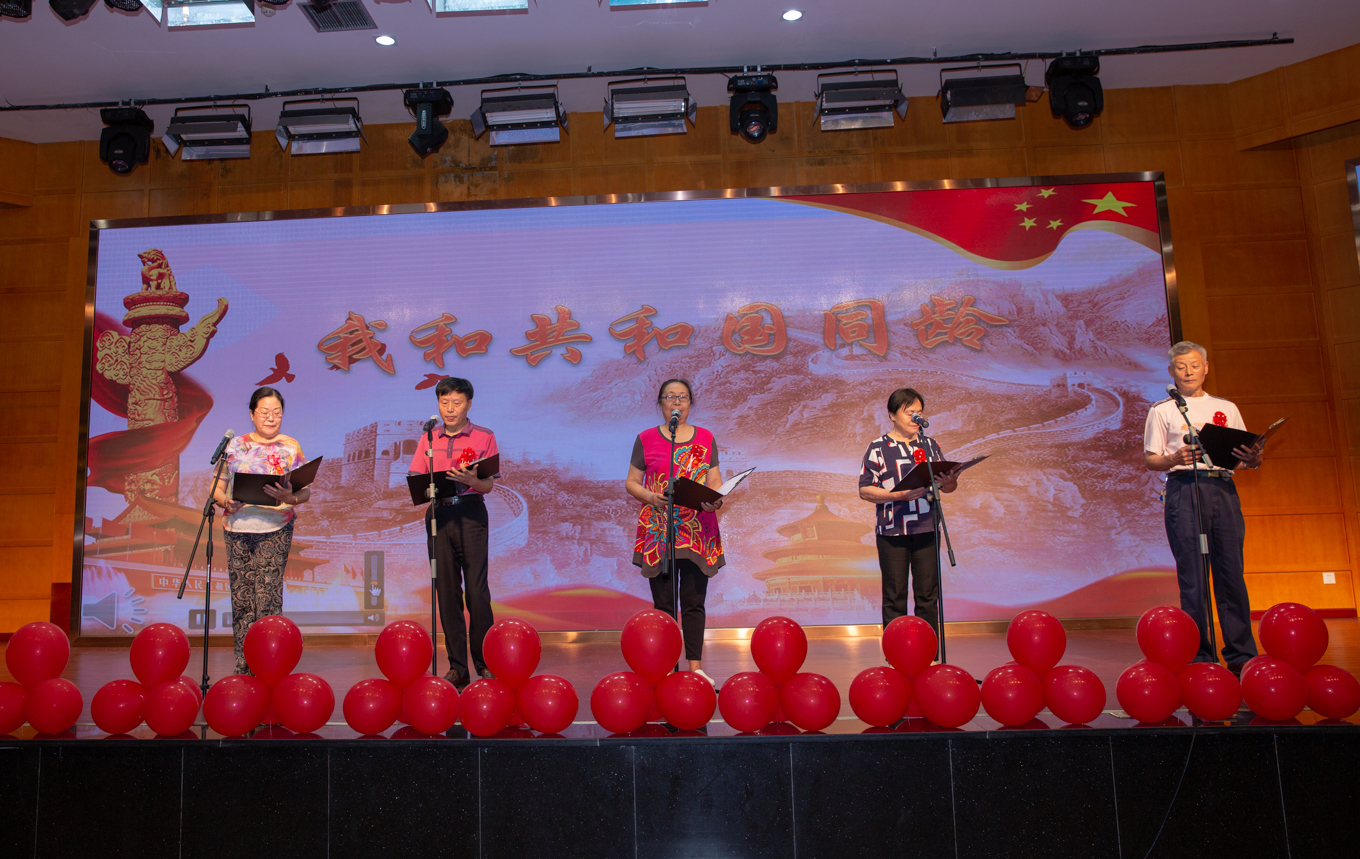 新中国在70年的栉风沐雨中取得了瞩目的光辉成就,学校大批的老同志也与新中国一起成长,他们是共和国沧桑巨变的亲历者、参与者、见证人。李开弟、刘俊、周令芳、颜碧、刘淑彬声情并茂地朗诵了由梁锦唐和刘海燕共同创作的诗歌《我与共和国同龄》,抒发了对祖国的深情祝福,感怀与祖国同龄的自豪。
