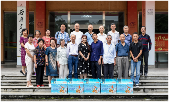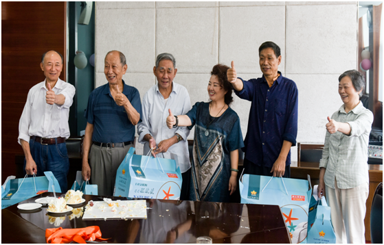 70岁的寿星代表黄正权发表感言,他衷心感谢在身患疾病后学校对他的关心,由衷祝愿祖国越来越繁荣富强。然后,王书记向各位寿星一一送上生日礼物并合影。