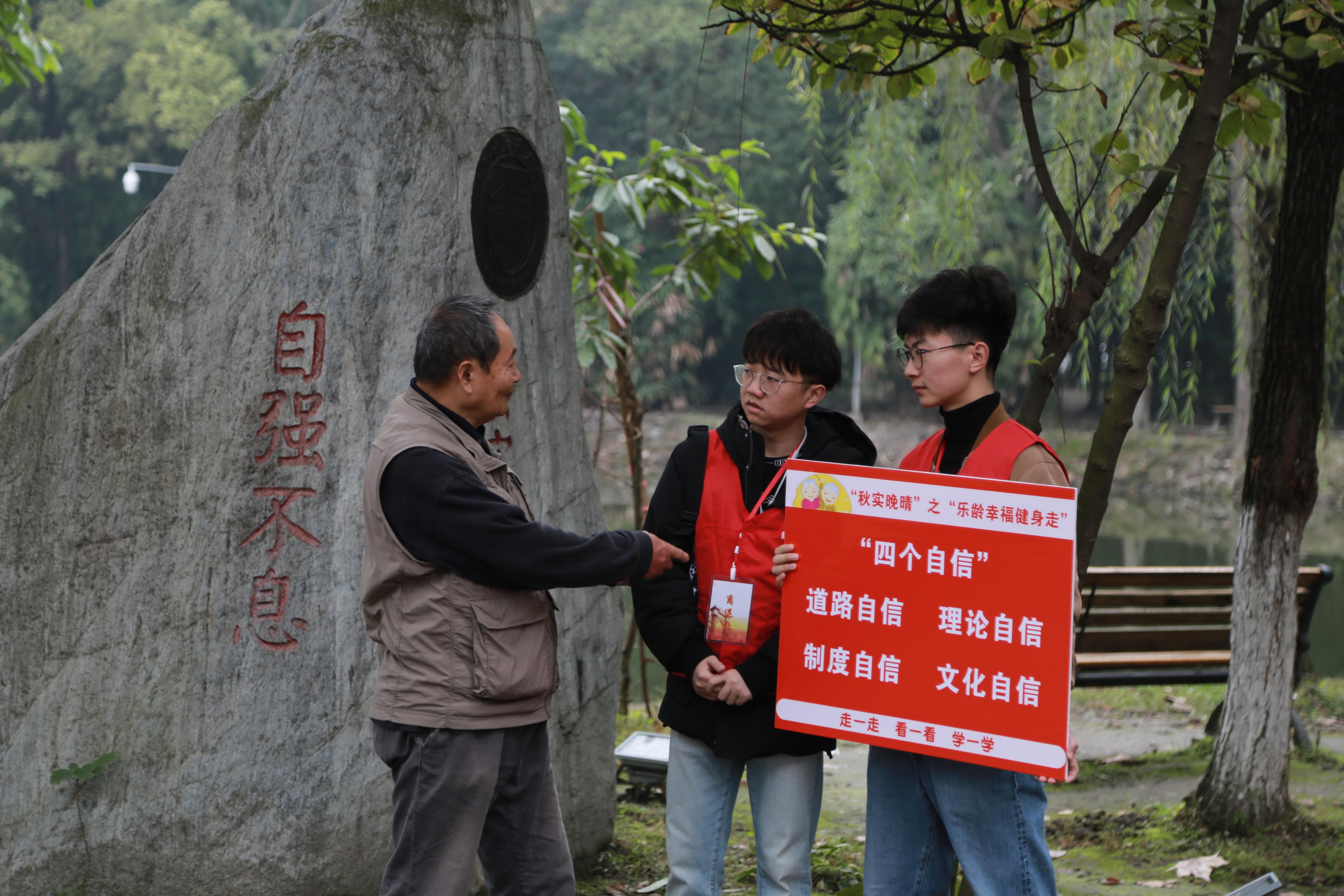 立冬前夕,党委老干部部(离退休工作处)举办了一场别开生面的“秋实晚晴”之“乐龄幸福健身走”活动。健身走的前两周,离退处精心准备,就天气情况、聘请老年志愿者和大学生志愿者、活动主题等问题群策群力,确定了“走一走、看一看、学一学”的活动主题。在健身绿道上设计了10块“健身走学习指引牌”,内容包括“健全幼有所育、学有所教、劳有所得、病有所医、老有所养、住有所居、弱有所扶等方面国家基本公共服务制度体系”、“我国国家制度和国家治理体系具有坚持全国一盘棋,调动各方面积极性,集中力量办大事的显著优势”等围绕党的十九届四中全会精神以及大家普遍关心的热点问题,旨在让老同志们亲近自然、健身强体、享受美好生活的同时,也学习关心国家大事,政治时事,传递向上向善的精神力量,共同释放正能量。