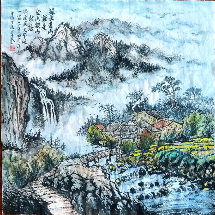 校医院退休教职工 常季坤 山水画作品《绿水青山就是金山银山》