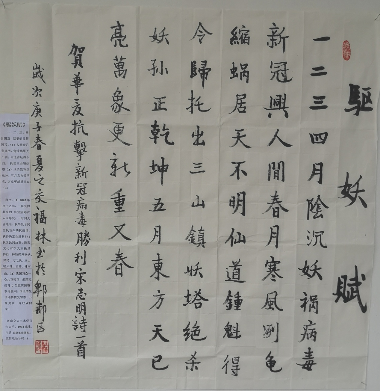 档案馆退休教职工 刘荣汉 书法作品《七律 送瘟神二首》