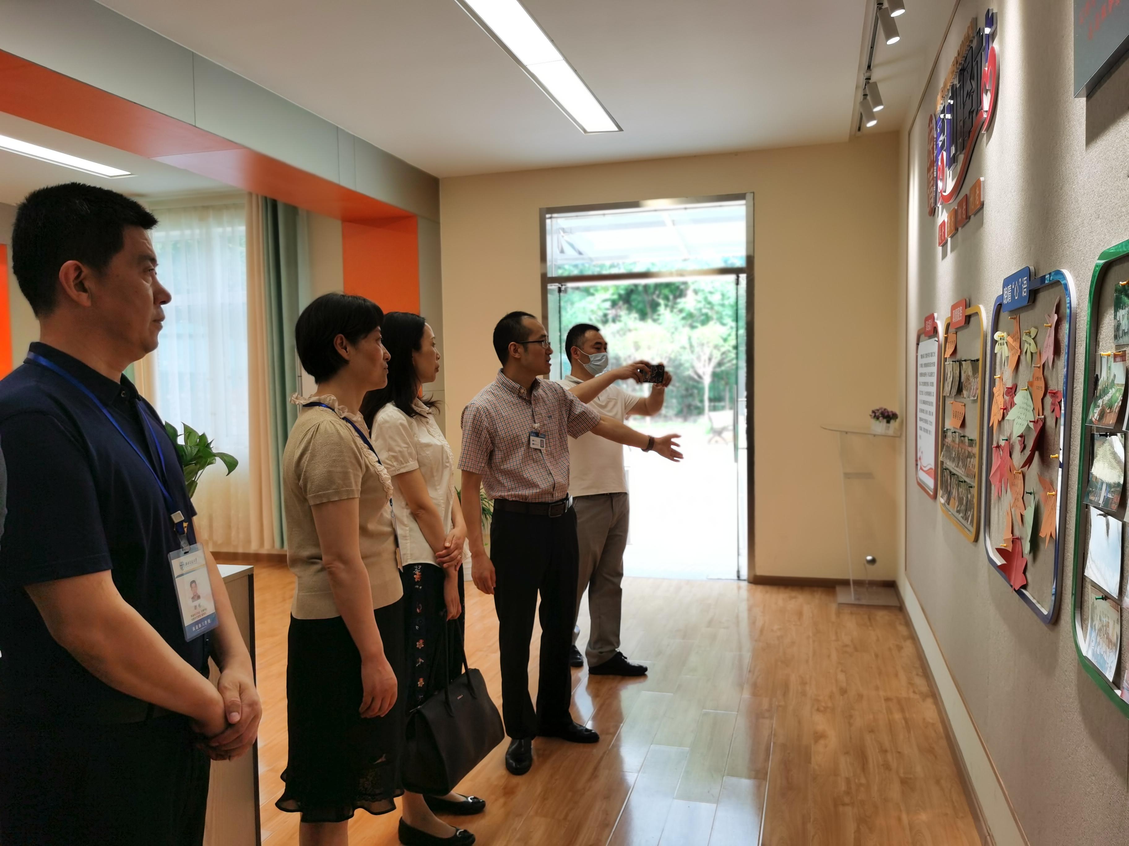 在学校离退休工作处党委书记段雪芬、处长廖军等同志的陪同下,韩春蓉一行兴致勃勃地依次参观了晚晴苑老年活动中心的室外门球、气排球、跳舞等场地,欣赏了室外宣传栏、橱窗的防疫知识、两会精神等正能量内容和我校离退休教职工的书画作品,参观了“晚晴爱心驿站”、“晚晴红色阵地”、多功能会议室、老年大学书画、音乐、跳舞、走秀等教室和室内走廊、楼梯文化氛围展示及台球室、健身房、乒乓球房、棋牌室、麻将室等活动室。韩春蓉一行边参观边肯定,赞叹学校党委对离退休工作的高度重视,惊叹学校对离退休老同志高标准、高质量的服务保障,感叹学校老同志乐享晚晴、生活幸福,特别对学校离退处为老干部和离退人员营造的“晚晴文化”氛围给予了高度的评价和充分的肯定。