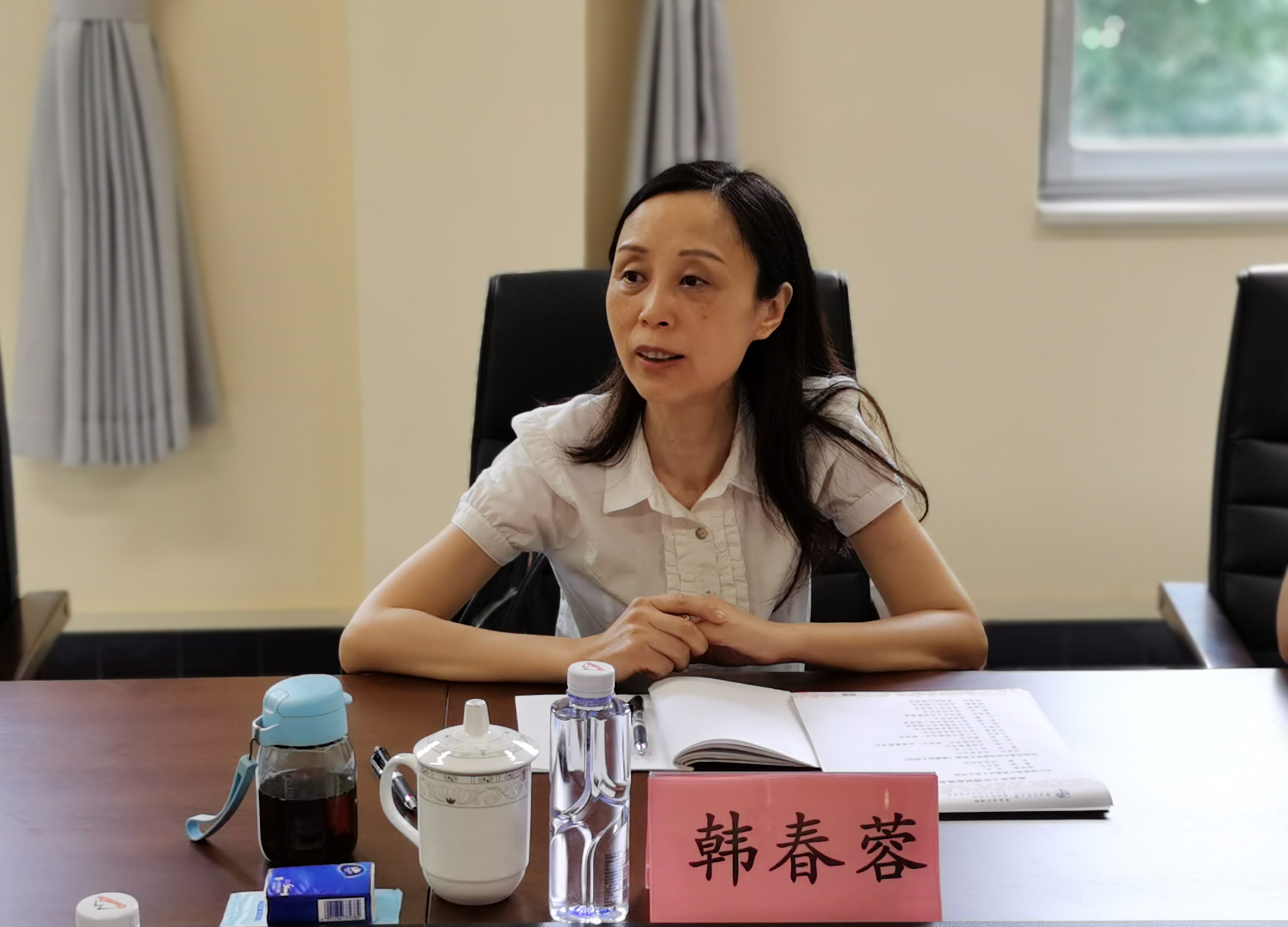 随后,韩春蓉一行在晚晴苑二楼会议室进行了座谈,学校离退处全体在职人员参加了座谈交流。