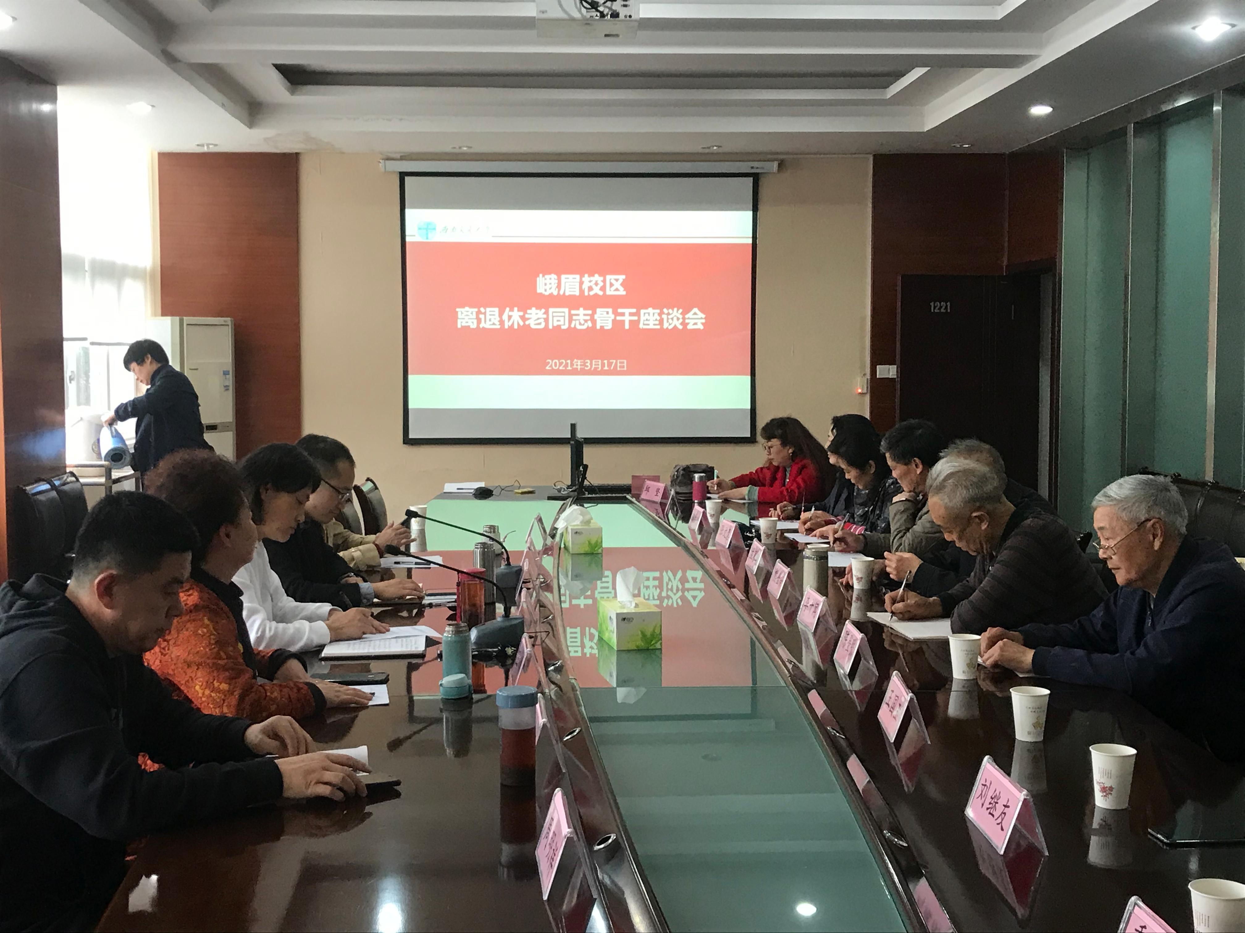 座谈会由廖军处长主持。廖军处长首先转达了王顺洪书记和杨丹校长对离退休老同志的慰问,代表离退休工作处向峨眉校区老同志骨干对离退休工作的支持表示充分肯定和真诚感谢。
