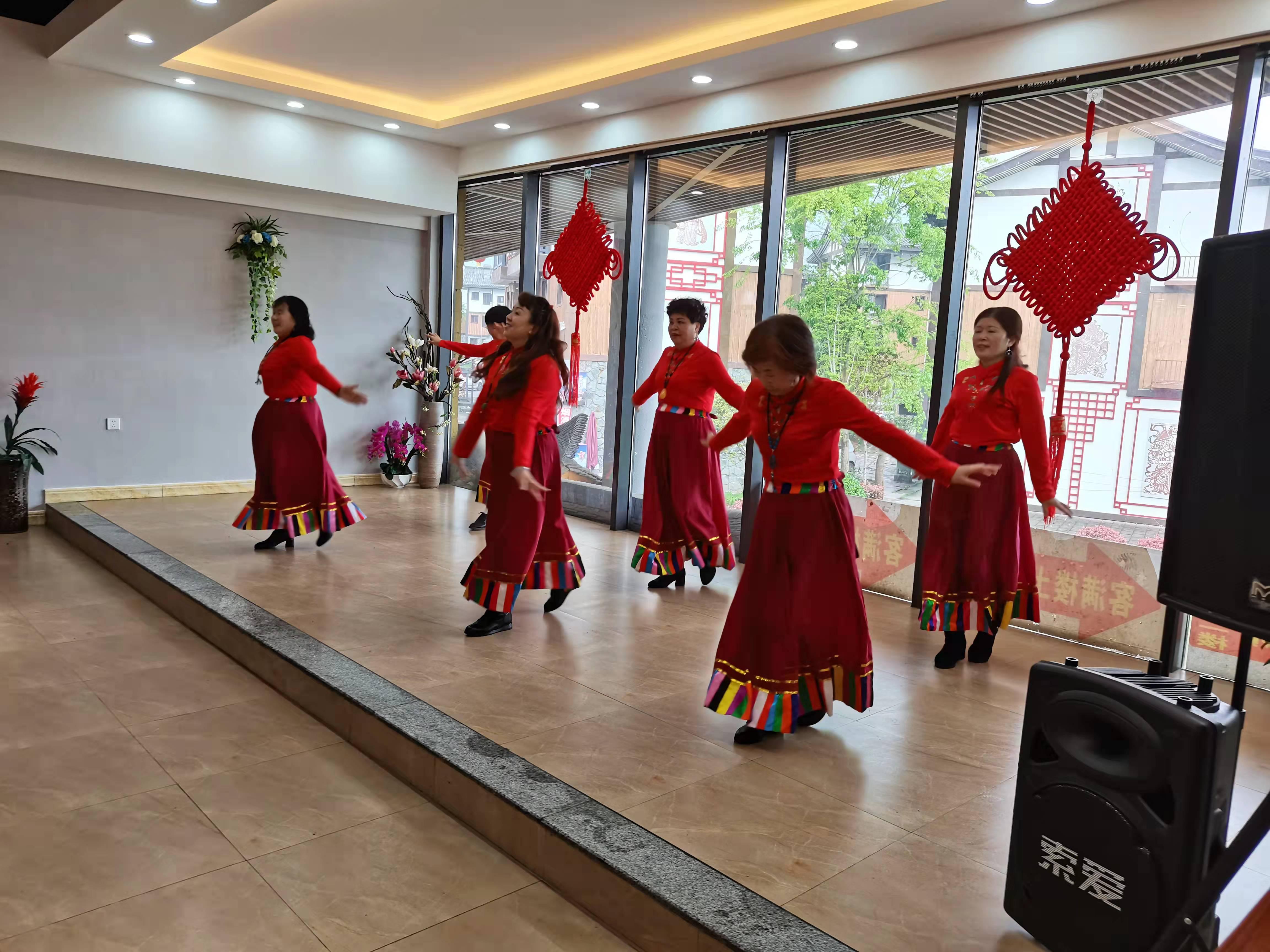 最后,峨眉晚晴苑老年活动中心的第一次汇报演出欢快开幕。歌唱队和舞蹈队悉数登场,分别献上歌声优美的大合唱和吉祥欢乐的集体舞,为老同志们增加节日的欢乐气氛。离退处领导和峨眉老同志们欢聚一堂,兴致盎然的享受这难得的相聚时光。