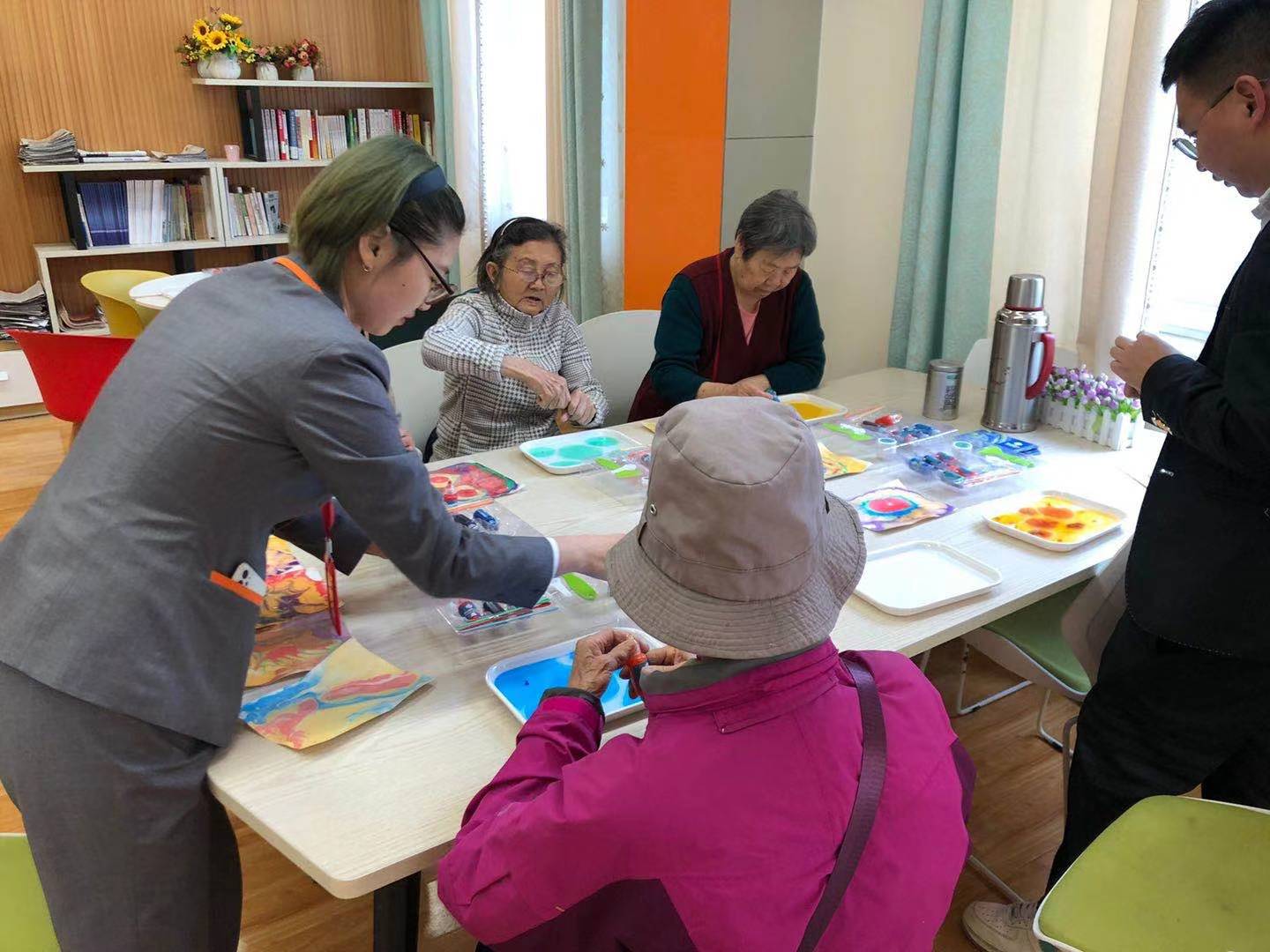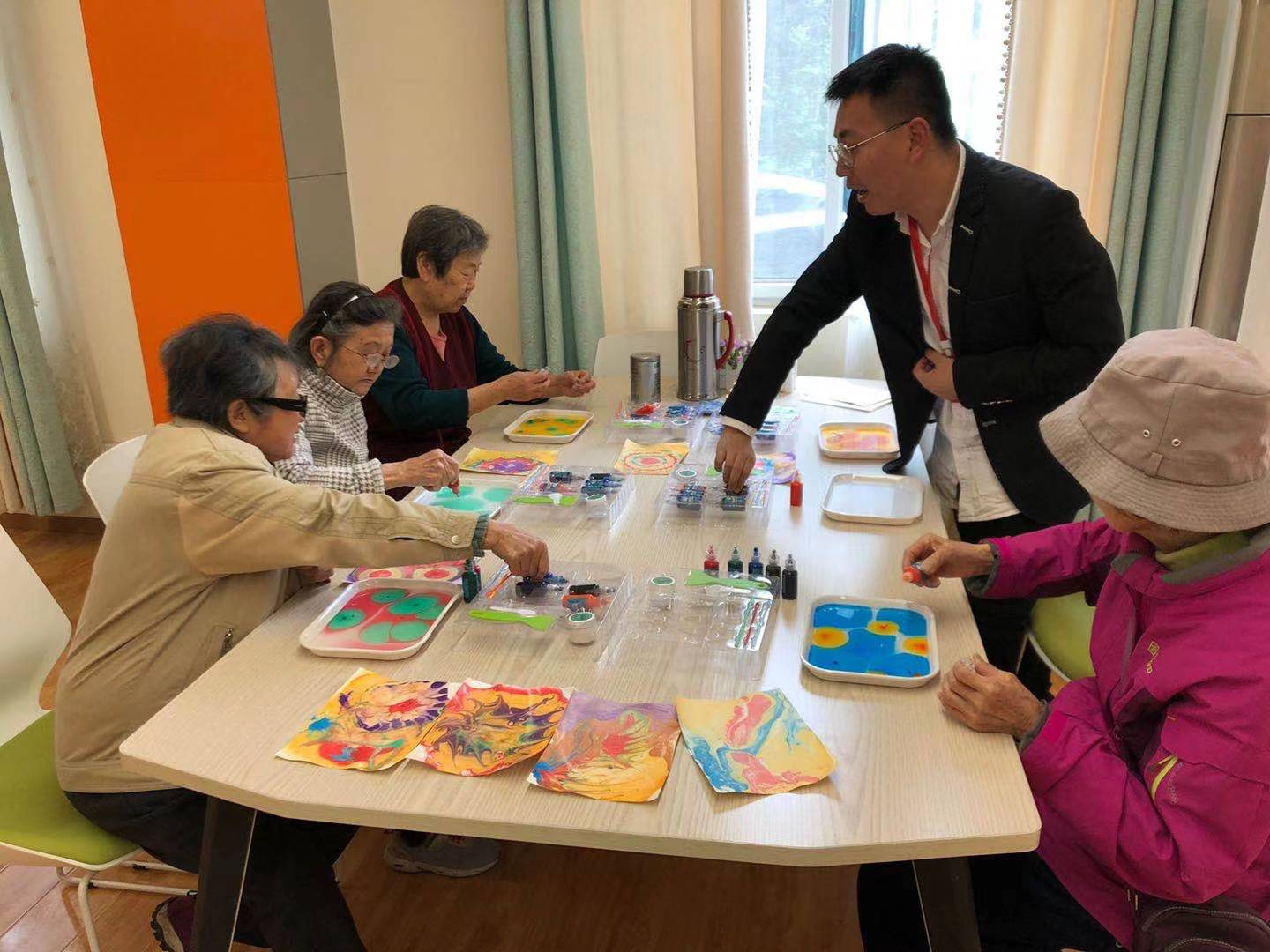“咨询时光”活动中,椿萱茂珉湾长者社区的工作人员来到晚晴苑,与各位爷爷奶奶一起开展了水拓画活动,各位爷爷奶奶积极参加,深切体会到了水拓画创作的乐趣。