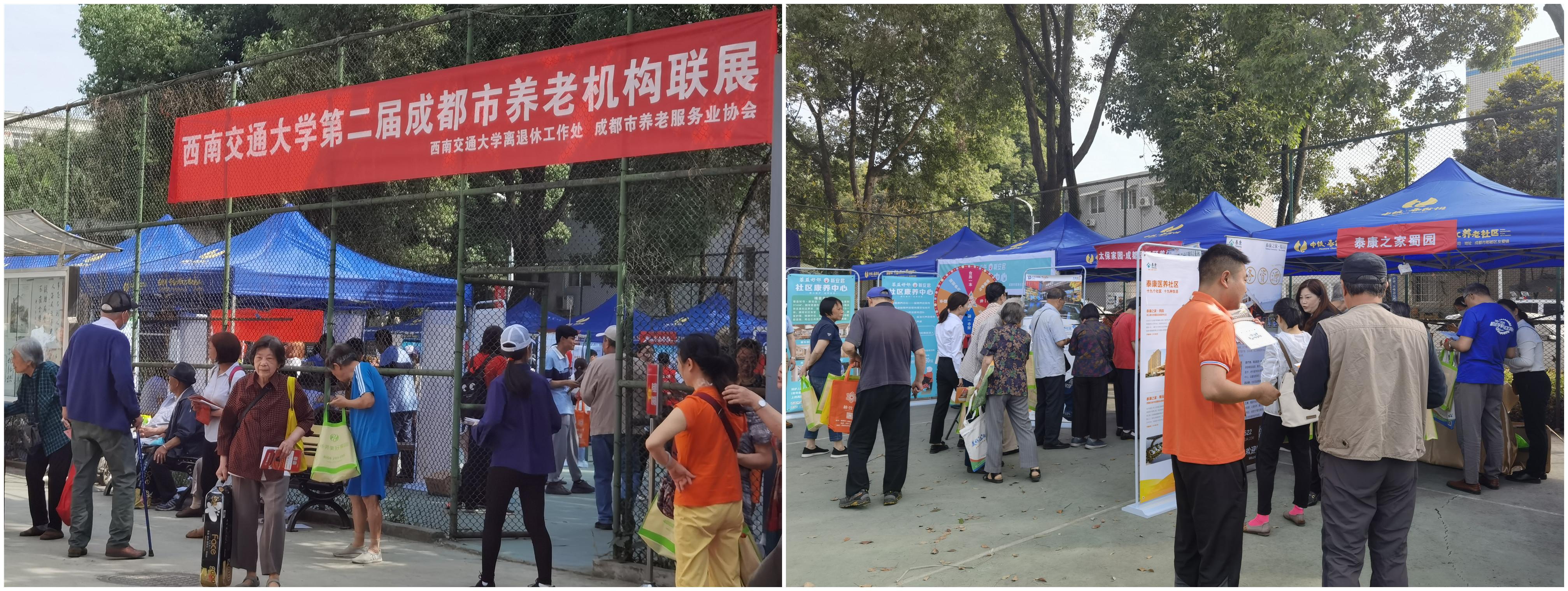 2019年,离退处与成都市社会福利与养老服务协会沟通合作,举行了首届“成都市养老机构进交大”活动,深受老同志们的好评。2020年,受疫情影响,联展活动未组织。今年,借庆建党百年•迎125校庆——“春华晚晴”之游园暨知识竞答活动之机,离退处协同成都市养老服务业协会举行第二届“成都市养老机构进交大”联展活动。14家资质完备、设施完善、服务优质的养老机构参展,为老同志提供养老服务信息咨询。