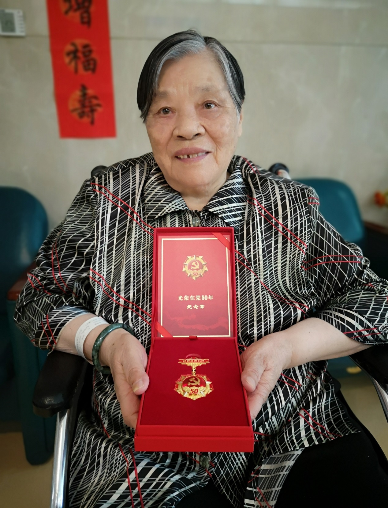 对于未能参加颁发仪式的老党员,离退处工作人员通过上门走访慰问、邮寄等多种方式在“七一”前将“光荣在党50年”纪念章送到老同志们的家中。