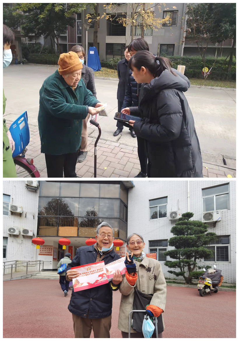 活动在九里、犀浦两校区分时进行,在九里南园两个出入口、北园两个出入口及晚晴苑门口共设五个“送学”点,兼顾南、北园电梯公寓、南北园家属区、学校东园及校外居住区6大区域的离退休老同志;犀浦五个家属区也各设一个点位。每个点位由两名工作人员分别负责刷卡识别身份和奖品发放,通过信息化手段提高工作效率,活动井然有序,醒目周到,老同志闻讯而来,热烈响应,学习热情高涨,他们既赞叹收获校历时的意外惊喜,更激动的翻开内页,细品十九届六中全会精神传达出的深邃思想和丰富内涵,为自己生活在这样伟大的国度里而自豪喜悦;他们谈及疫情,虽小心谨慎,但内心坚定,相信中国共产党,相信国家,相信政府,在全国的共同努力下,我们已经成为世界最安全的国度。披着初冬和煦的日光,印着银杏绚丽的金黄,每一位老同志笑脸盈盈:“送学”送的是学,更是触抵人心的温暖,是充满关怀与善意的温情。