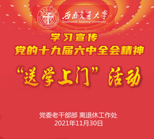 为在全校离退休教职工中广泛开展党的十九届六中全会精神学习宣传,结合目前疫情防控和离退休教职工实际需要,党委老干部部(离退休工作处)于2021年11月30日-12月1日,在九里、犀浦两校区分时段、分区域开展“送学上门”活动,受到广大离退休教职工的热烈欢迎和高度肯定。