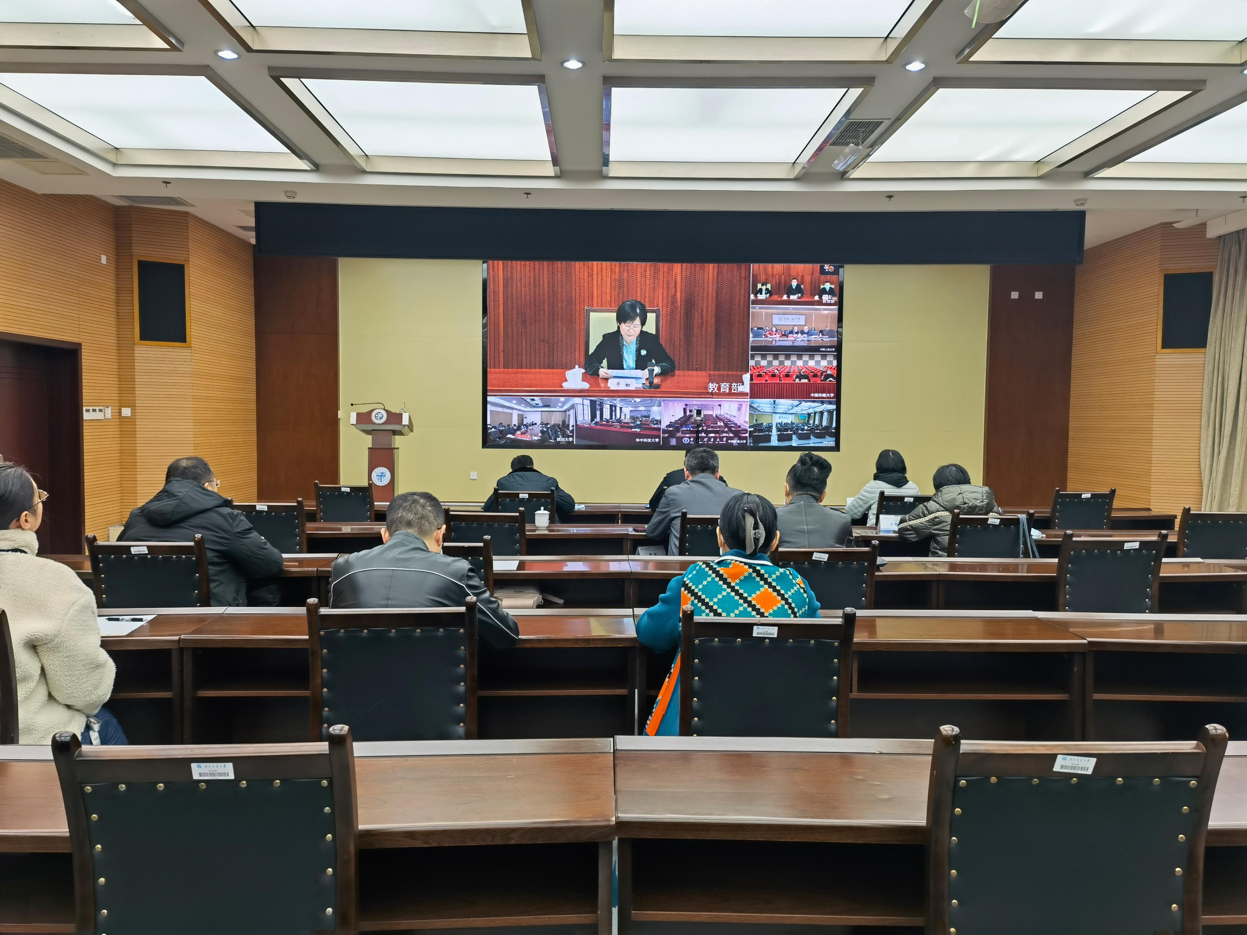 3月2日上午,教育部办公厅召开教育部直属系统离退休工作视频通气会,主会场设在教育部,分别在部直属高校设分会场,1000余名离退休工作者参加会议。教育部党组成员、副部长宋德民、中央组织部老干部局副局长赵胜利出席会议并讲话。教育部离退休干部局党委书记、局长于虹主持会议。英国威廉集团官网在综合楼148室设立分会场,学校党委副书记桂富强及党委老干部部(离退休工作处)全体职工参加视频会议。