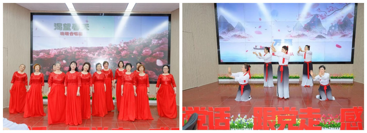 晚晴合唱团和晚晴舞蹈队的老同志们精心准备了合唱《渴望春天》和舞蹈《万疆》,为寿星们祝寿。