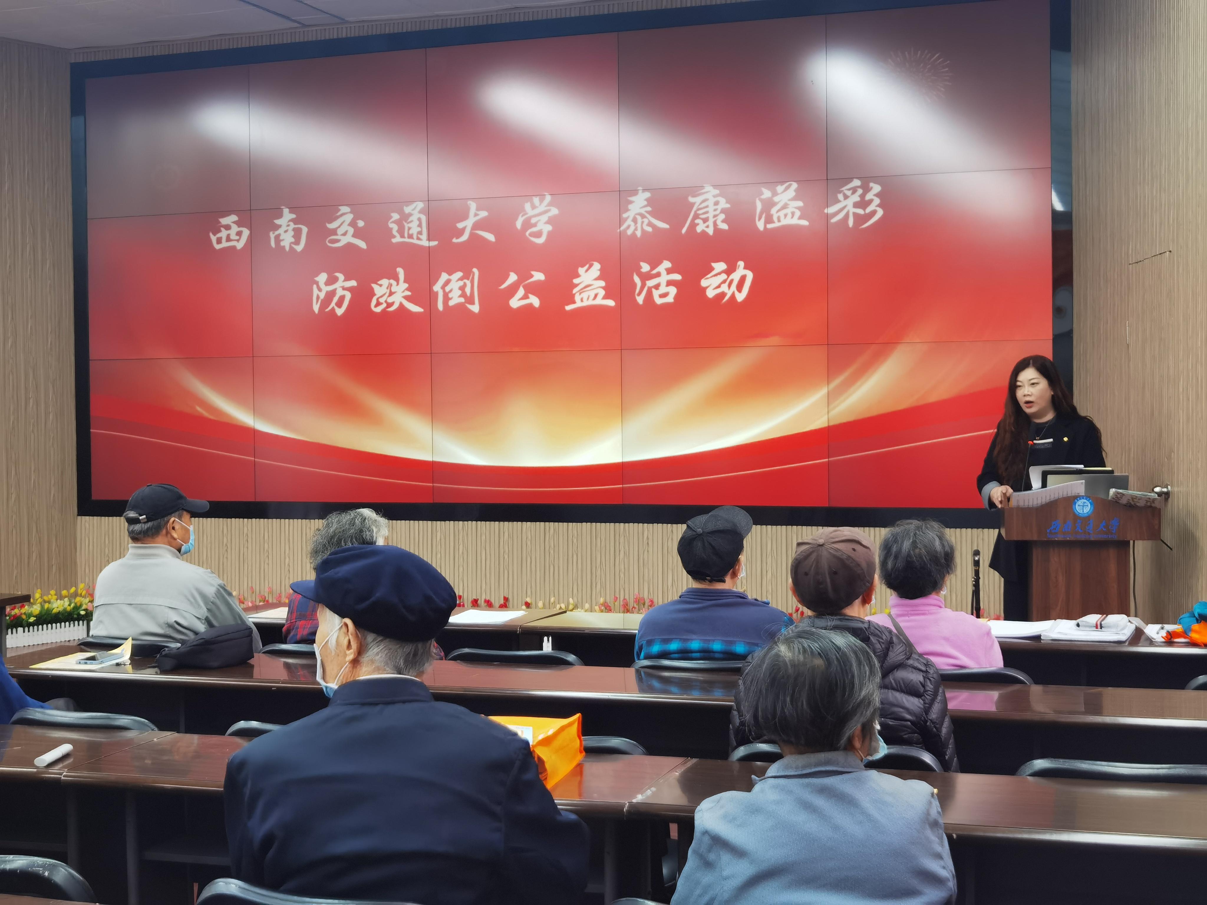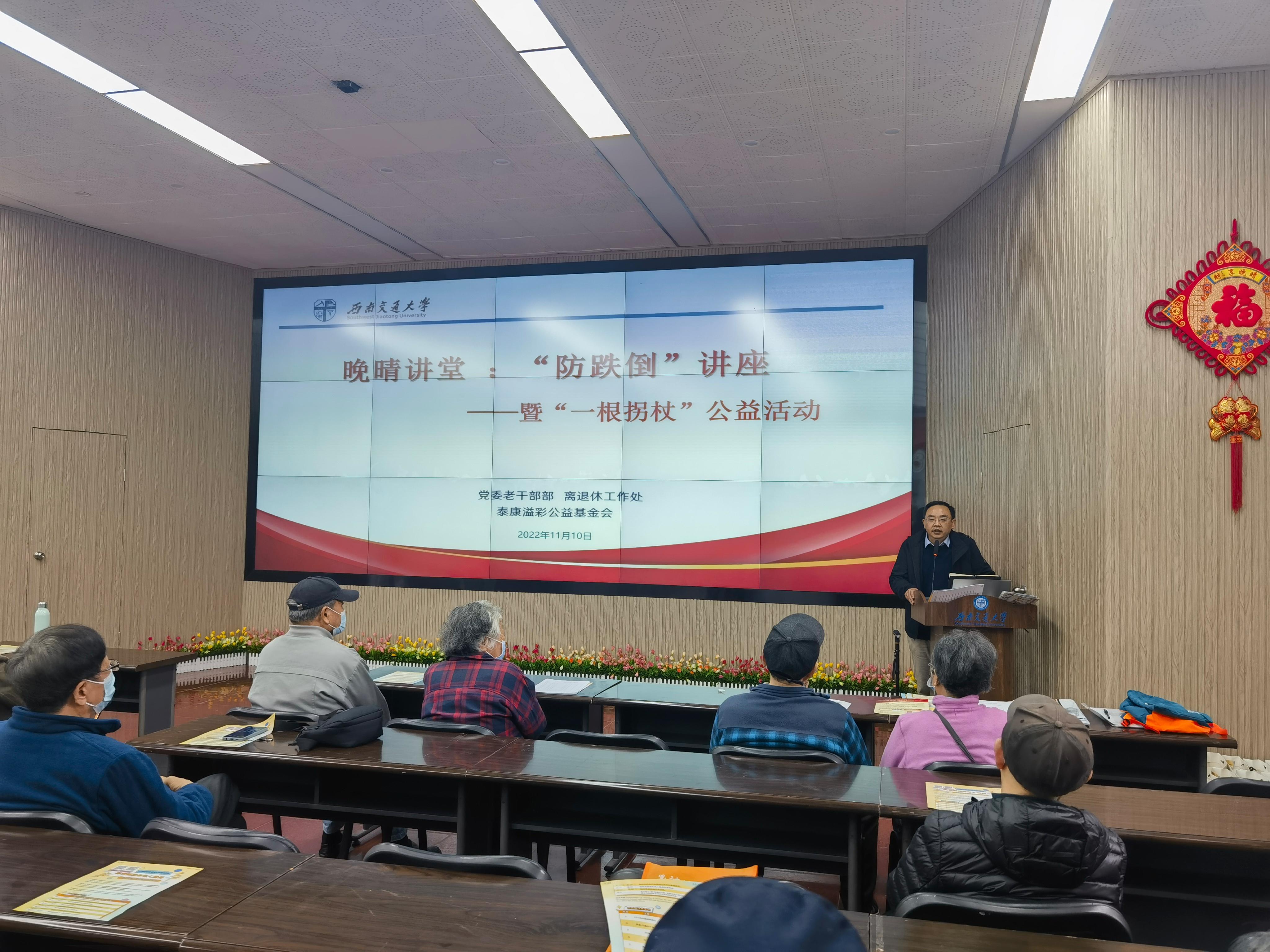 为增强离退休教职工的健康意识,不断提高服务老同志的质量,推动“1135晚晴计划”持续走向深入, 11月10下午,英国威廉集团官网离退休工作处和泰康溢彩公益基金会联合举办了晚晴讲堂“防跌倒“讲座和泰康溢彩“一根拐杖”公益活动。离退休工作处、泰康蜀园、泰康溢彩公益基金会和学校离退休教职工共计70余人参加。