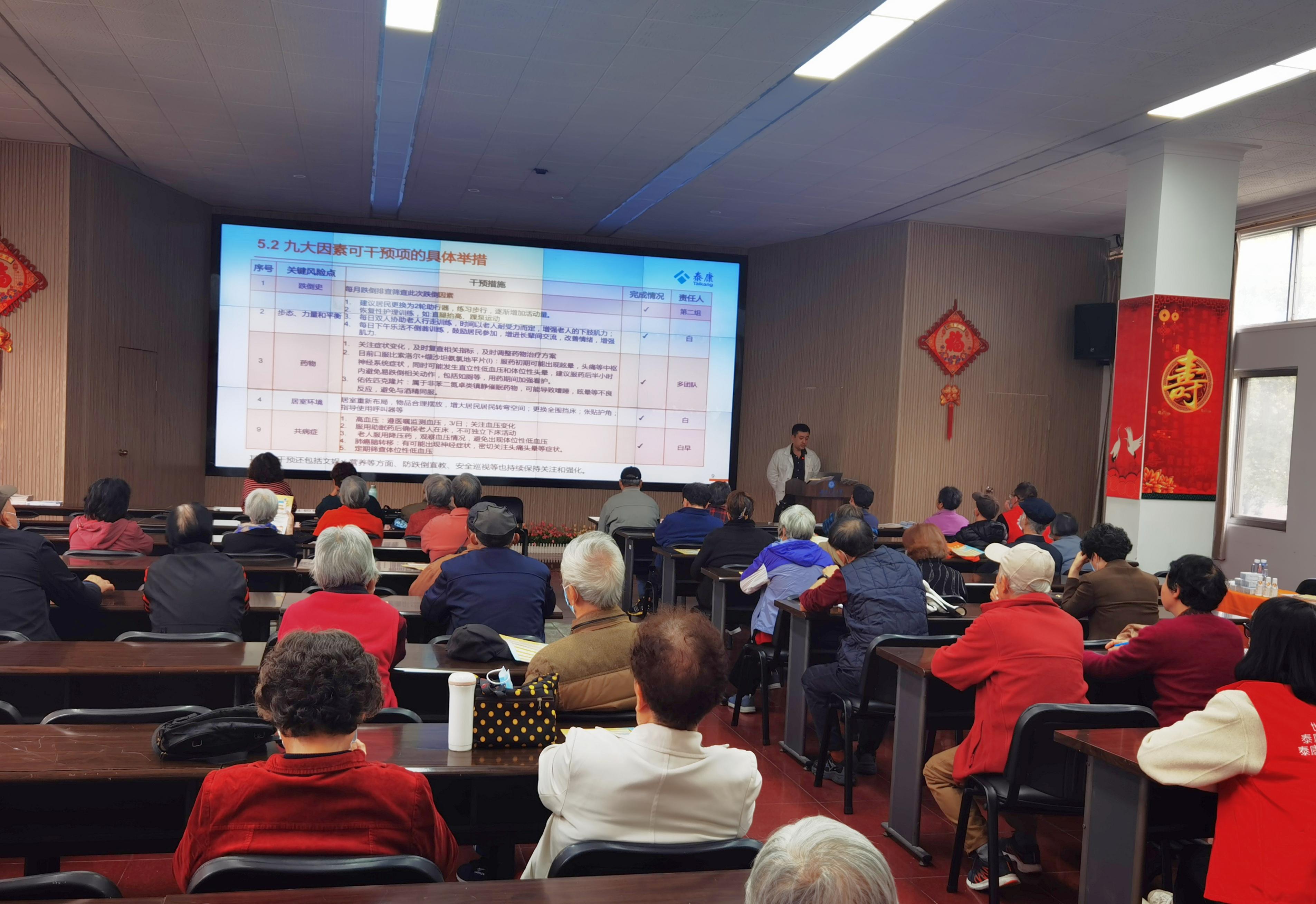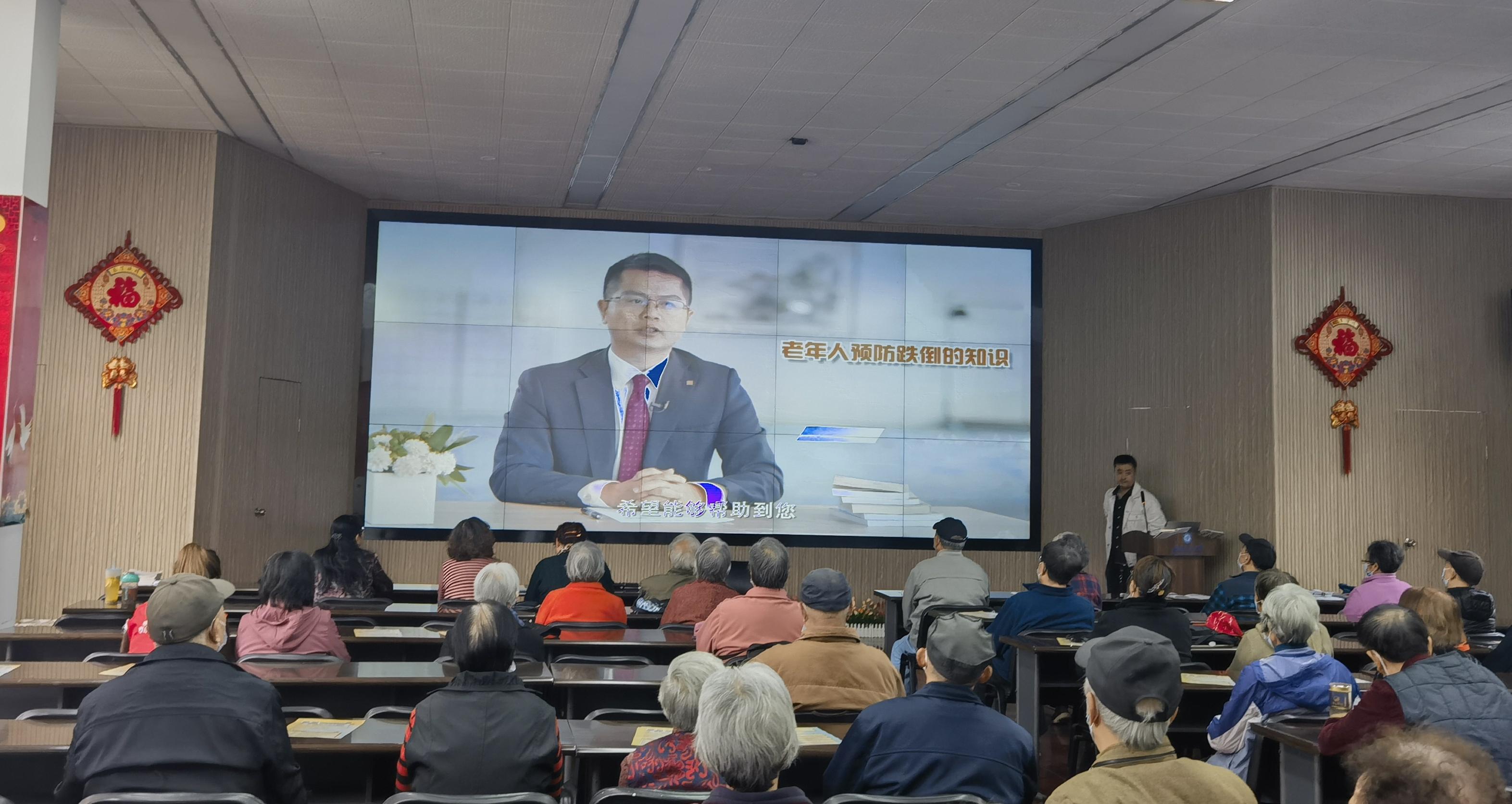 接着,泰康溢彩公益基金会志愿者开展晚晴讲堂,先带领老同志进行了健康操锻炼,活动身体。再通过《如何预防老年人跌倒》的视频学习如何科学预防跌倒的健康知识,让与会人员更深刻认识防跌倒的重要性、如何有效防跌倒和科学应对跌倒发生后的相关措施。