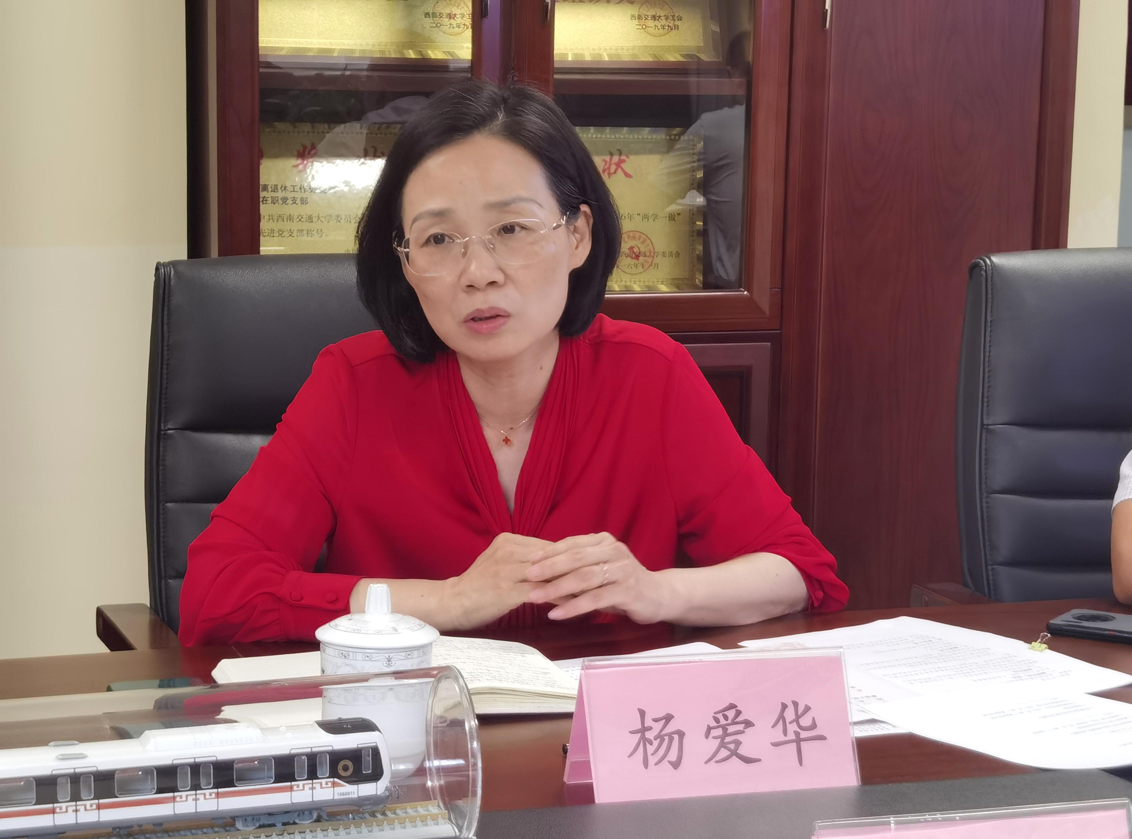 调研交流会上,杨爱华副书记对四川省教育厅领导莅临我校指导工作表示热烈欢迎,对教育厅长期以来对学校的关心支持表示感谢,并对学校最新取得的办学成果和离退休工作推进的总体思路和亮点进行介绍。杨爱华指出,学校党委一直高度重视离退休工作,始终坚持和加强党对离退休工作的全面领导,面对当前离退休教职工总量多、校内居住多、高龄老人多等特点,不断加大经费和资源投入力度,创新工作模式,用心用情做好各项服务,不折不扣落实老同志的政治待遇、生活待遇、医疗待遇,在全校上下形成了“怀爱老之情、扬敬老之德、兴助老之风、办利老之事”的“交大晚晴文化”,学校老同志的获得感幸福感安全感明显增强。