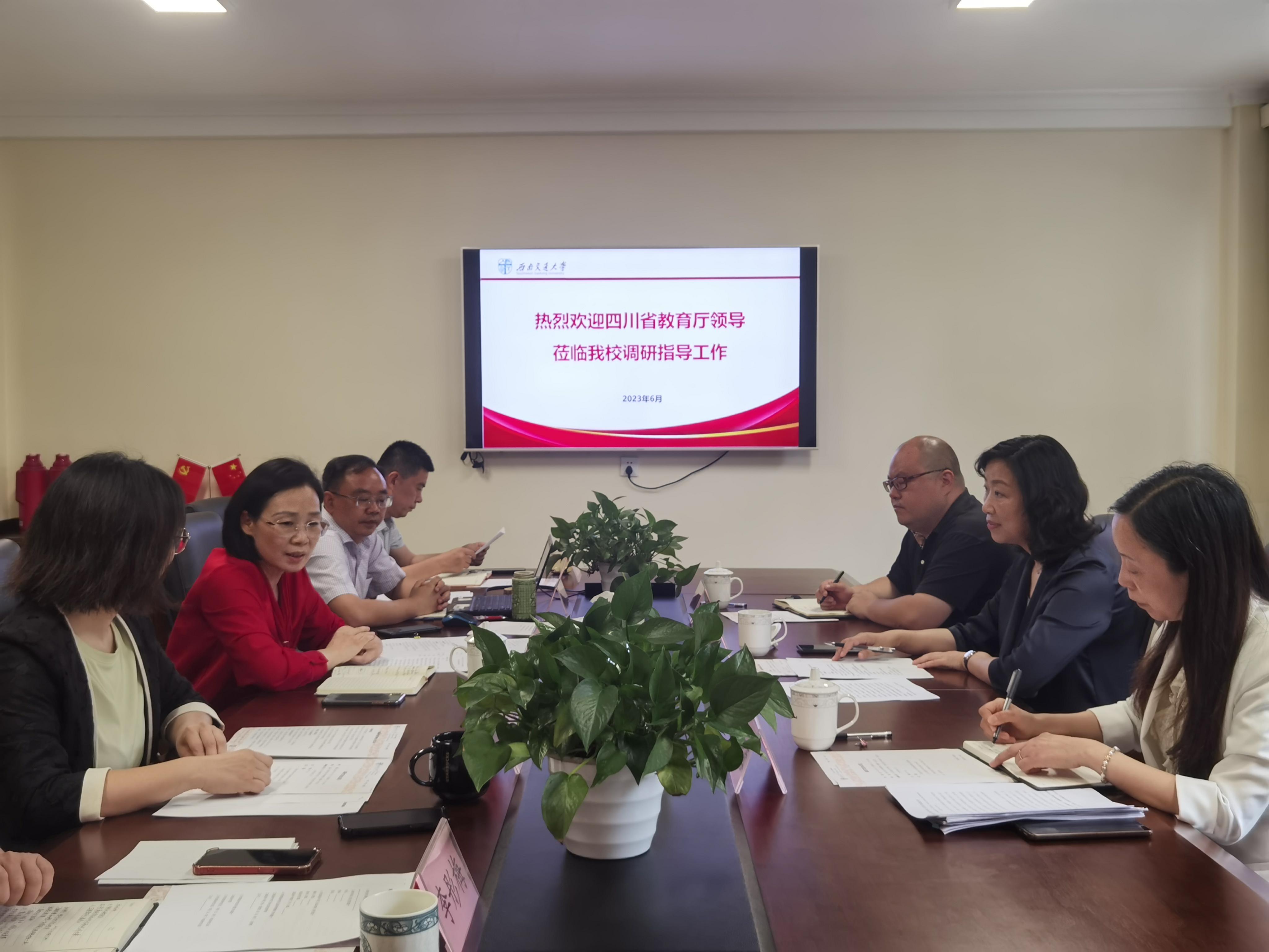 2023年6月8日上午,四川省教育厅副厅长蔡光洁,教育厅离退休处处长韩春蓉,教育厅离退休处一级主任科员许丛琪一行来校调研离退休工作并进行座谈交流。学校党委副书记杨爱华及离退休工作处全体班子成员参加调研。
