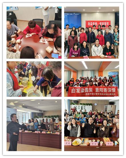 化学学院、公管学院、环境学院分别在10月18、24、 28日精心组织三场联谊活动,围绕爱老敬老、健康养老,爱在重阳、巧手制作等主题,唱红歌、玩游戏、跳广场舞、制作漆扇,锻炼八段锦等,丰富多彩的活动中白首与黑发同乐,老师与学生共情,传递着满满的爱与温暖。