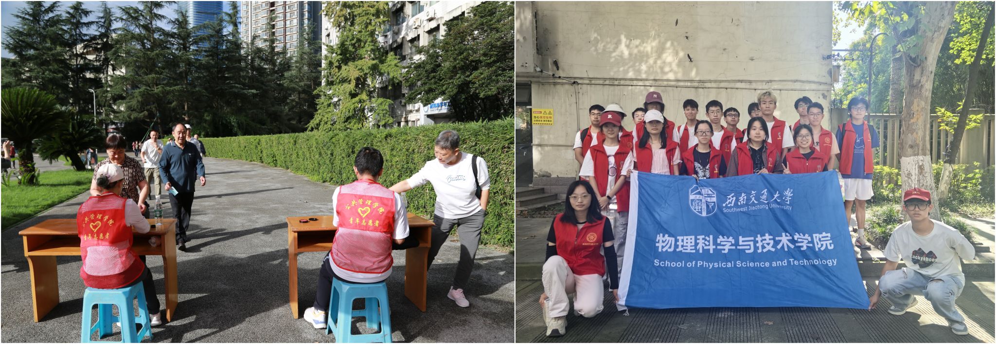 活动的顺利开展,离不开多方力量的支持。保卫处为活动提供安全保障;公共管理学院、物理学院学生志愿者们早早抵达现场,有序开展物资搬运、场地布置、路线指引等服务,用实际行动传承中华民族尊老敬老的传统美德。