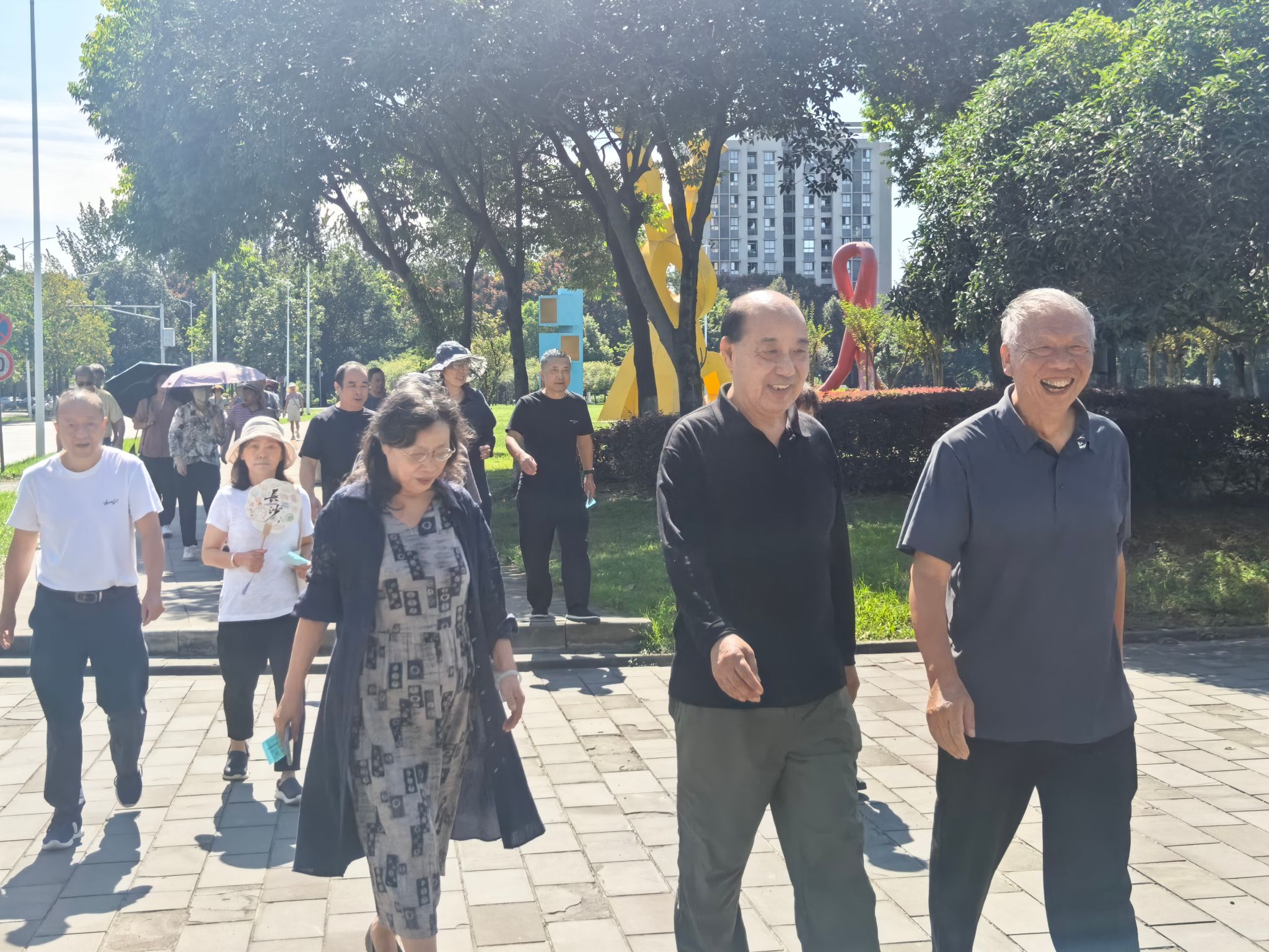 9 月 19 日,恰逢中国人民抗日战争暨世界反法西斯战争胜利80周年之际,我校 “秋实晚晴” 系列活动之 “乐龄幸福健身走” 在九里、犀浦两校区温情启幕,1400余名离退休教职工踊跃参与,用活力与笑容定格校园秋日美好。