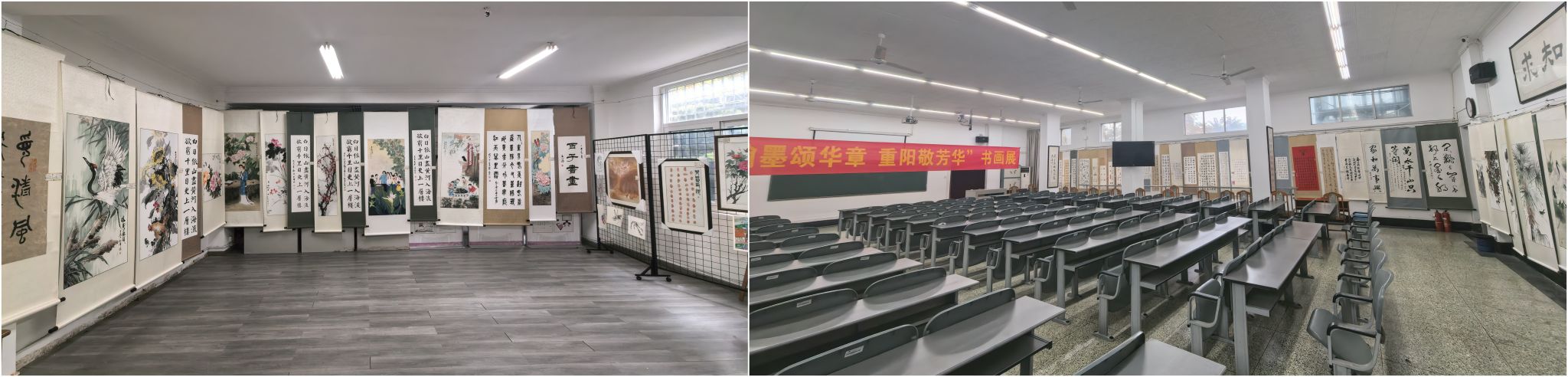 活动现场,老年大学学员带来舞蹈《如愿》和书画主题走秀《墨笔生花》,晚晴合唱团带来《在希望的田野上》《爱我中华》歌曲联唱,现场还举办“翰墨颂华章 重阳敬芳华”离退休教职工书画展,吸引众多师生驻足欣赏。