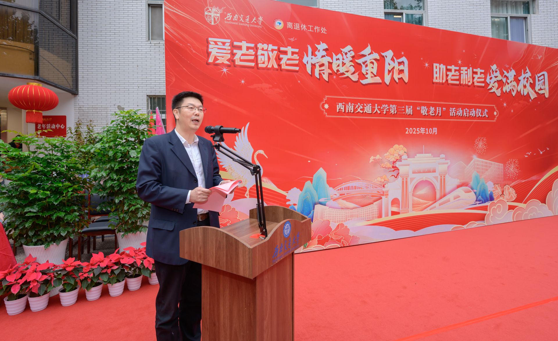 闫学东代表学校党政,向全校广大离退休教职工致以诚挚问候。他表示,近年来,学校党委深入贯彻落实习近平总书记关于老龄工作的重要指示精神,持续完善优化离退休服务保障工作体系,从优化老年活动设施到丰富文化生活,从细化医疗健康服务到健全日常帮扶机制,全方位、多维度把对老同志的关怀落到实处,让尊老敬老、爱老助老成为全校上下的思想共识与行动自觉。闫学东希望广大离退休教职工一如既往地关心、支持学校的改革发展。学校将始终把离退休工作摆在重要位置,不断完善工作机制,创新服务模式,为离退休教职工老有所养、老有所为、老有所学、老有所乐,努力创造更好的保障条件,积极营造全校上下关心、关爱老同志的浓厚氛围,让大家在交大校园共享学校改革发展的成果,安享幸福美满的晚年生活。