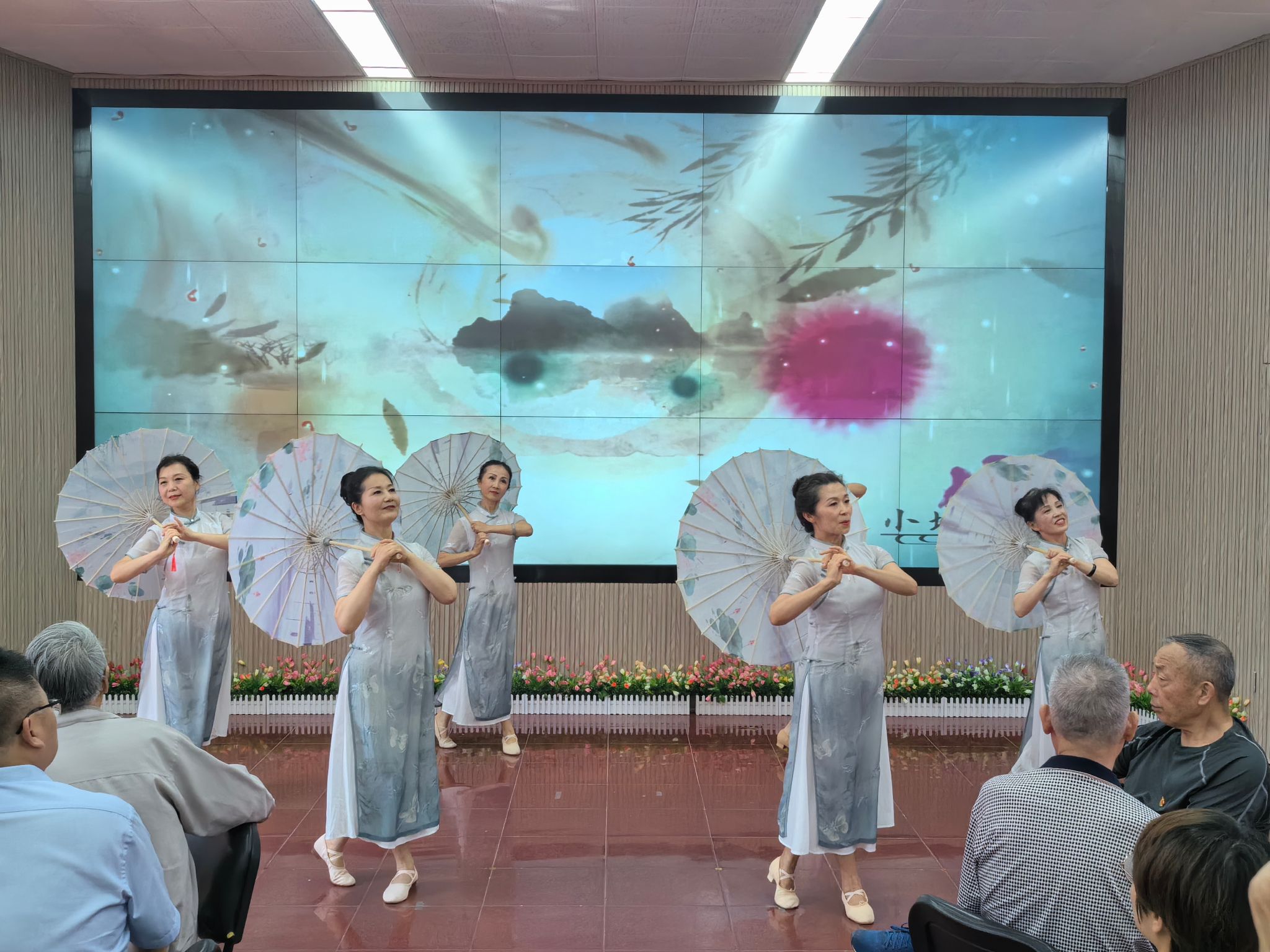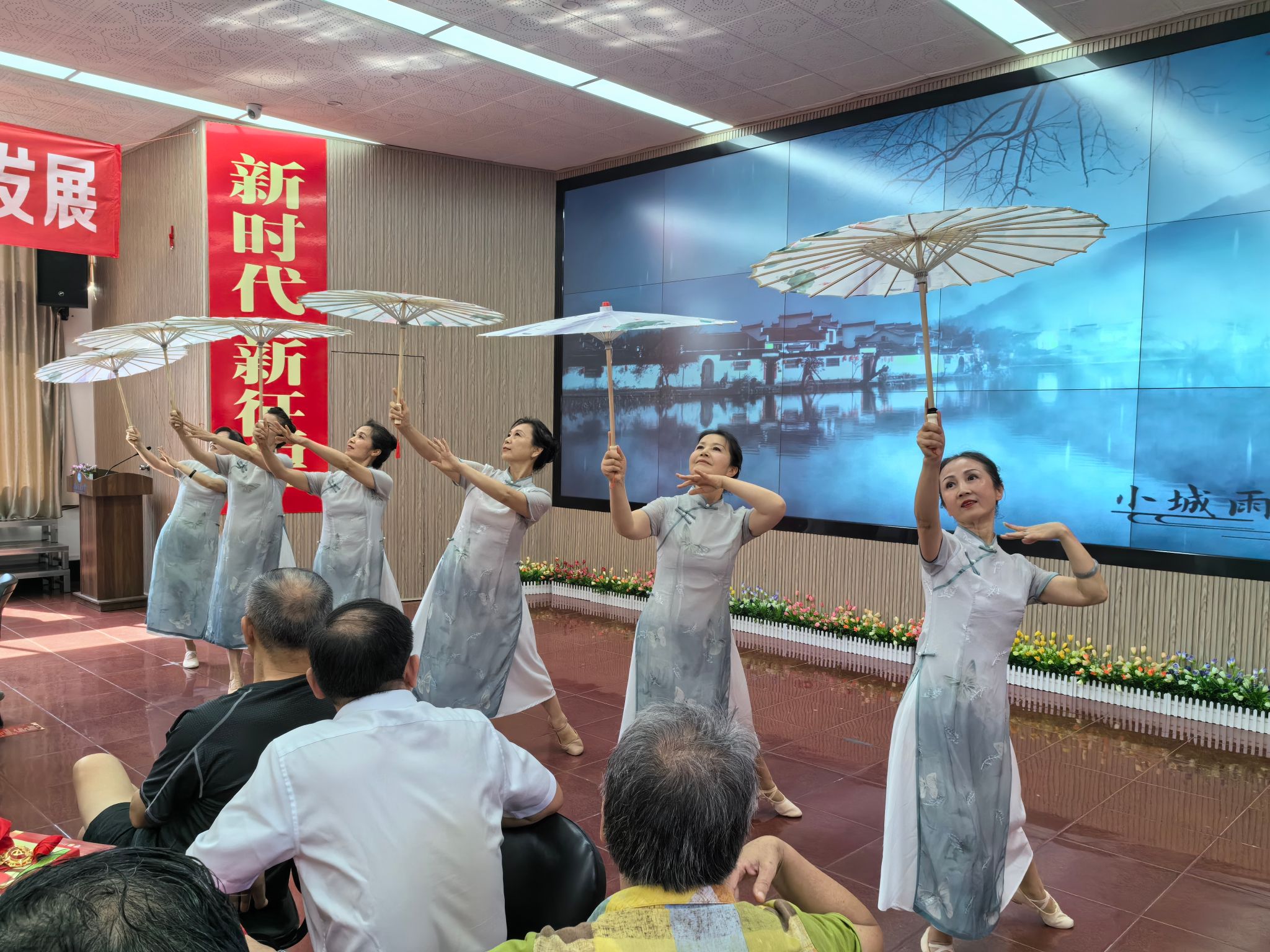 晚晴舞蹈协会的退休老师精心准备了舞蹈《小城雨巷》,表达对老同志们集体生日的祝贺。