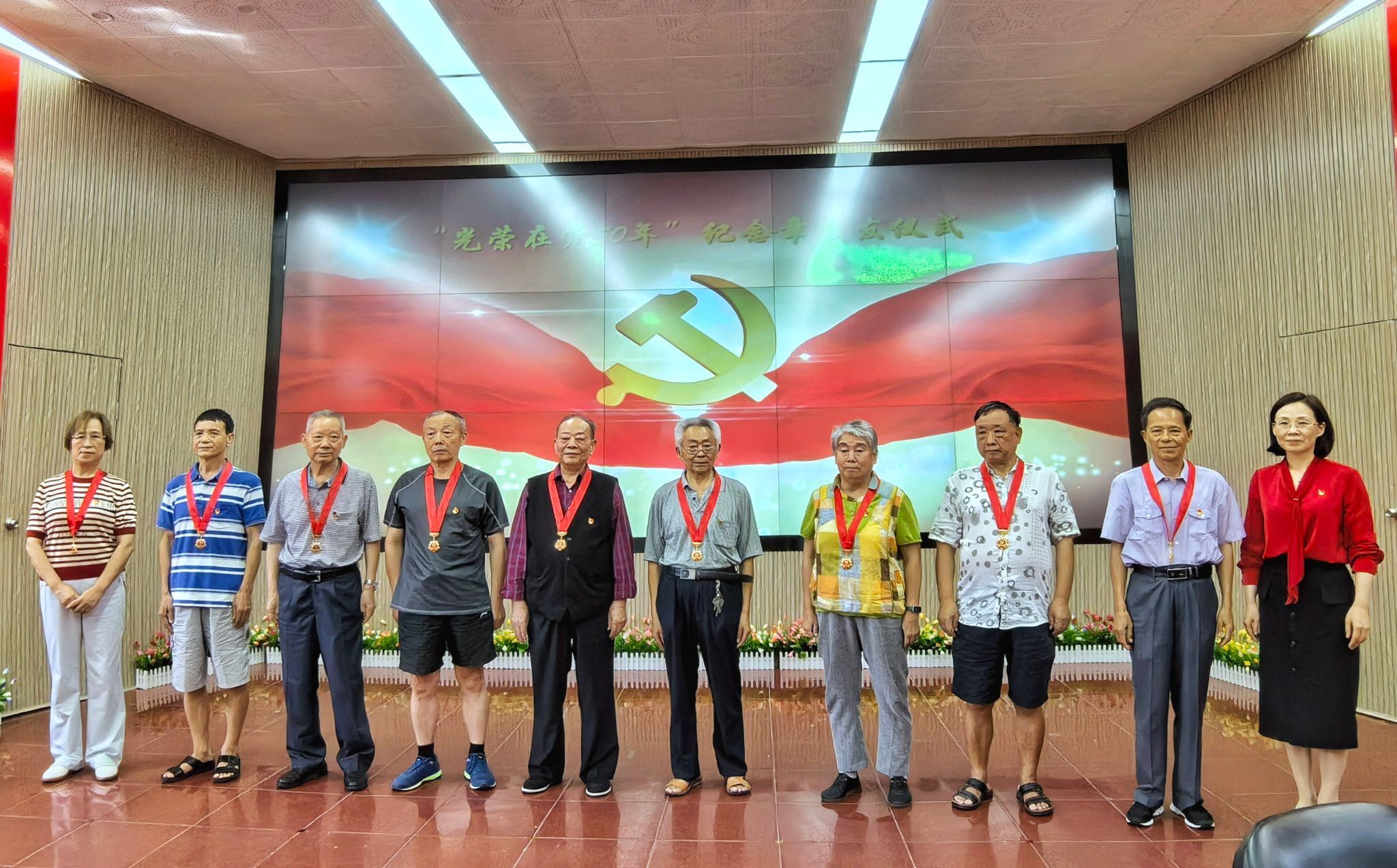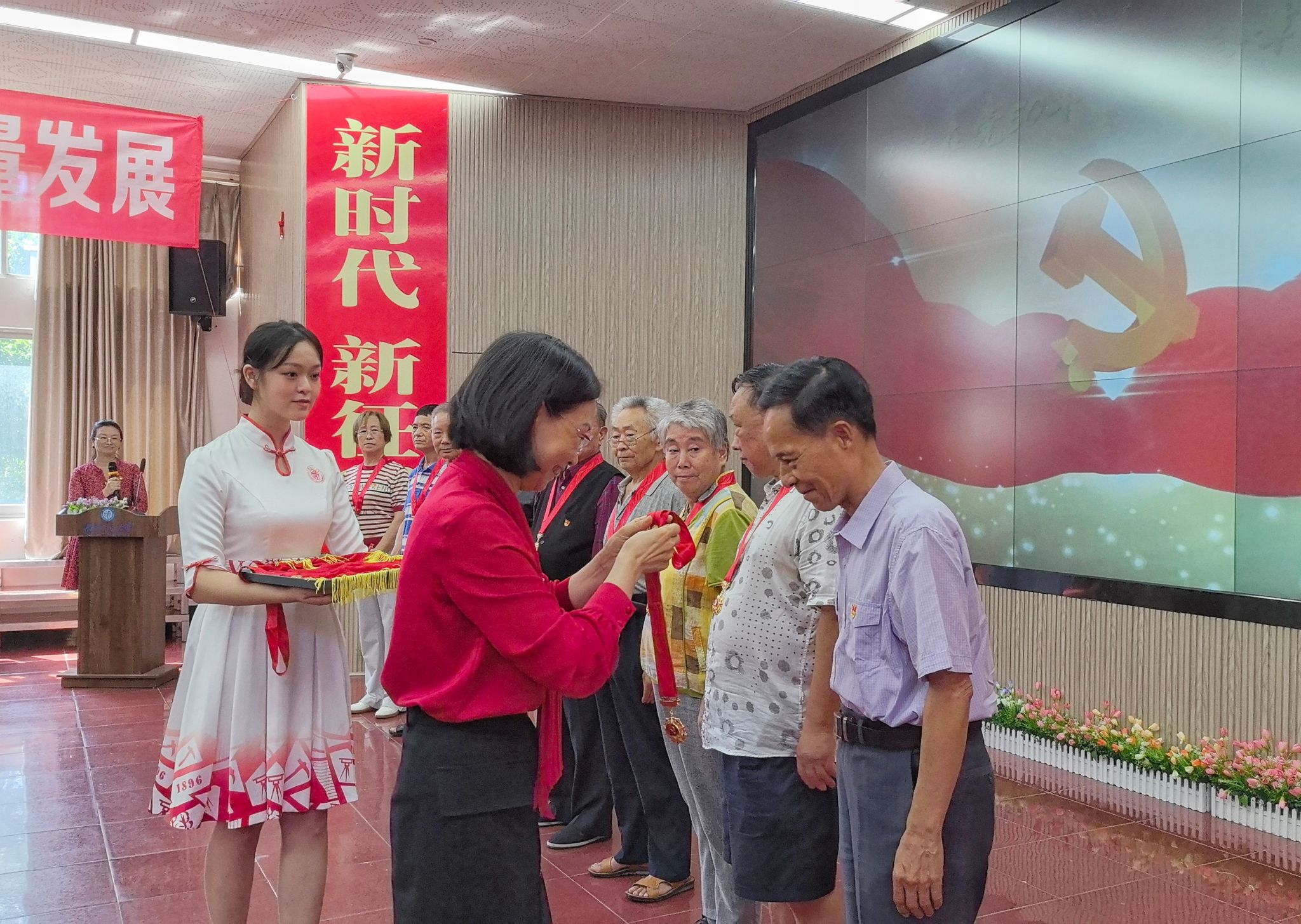 杨爱华向今年符合“光荣在党50年”条件的9位参会老党员颁发了纪念章,张华同志带领会场全体党员重温了入党誓词。