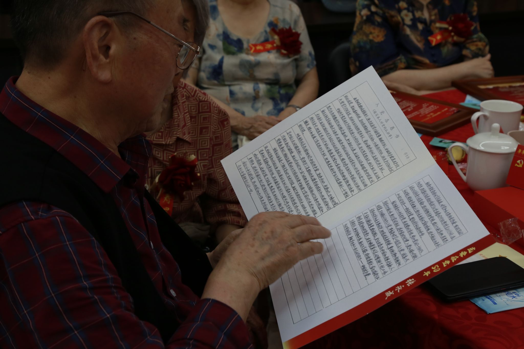 在党50年,50载风雨兼程,在庆祝中国共产党成立103周年之际,离退处党委将今年“光荣在党50年”老党员们的入党志愿书复印件制作成贺卡送给本人,回顾初心,重温峥嵘岁月。