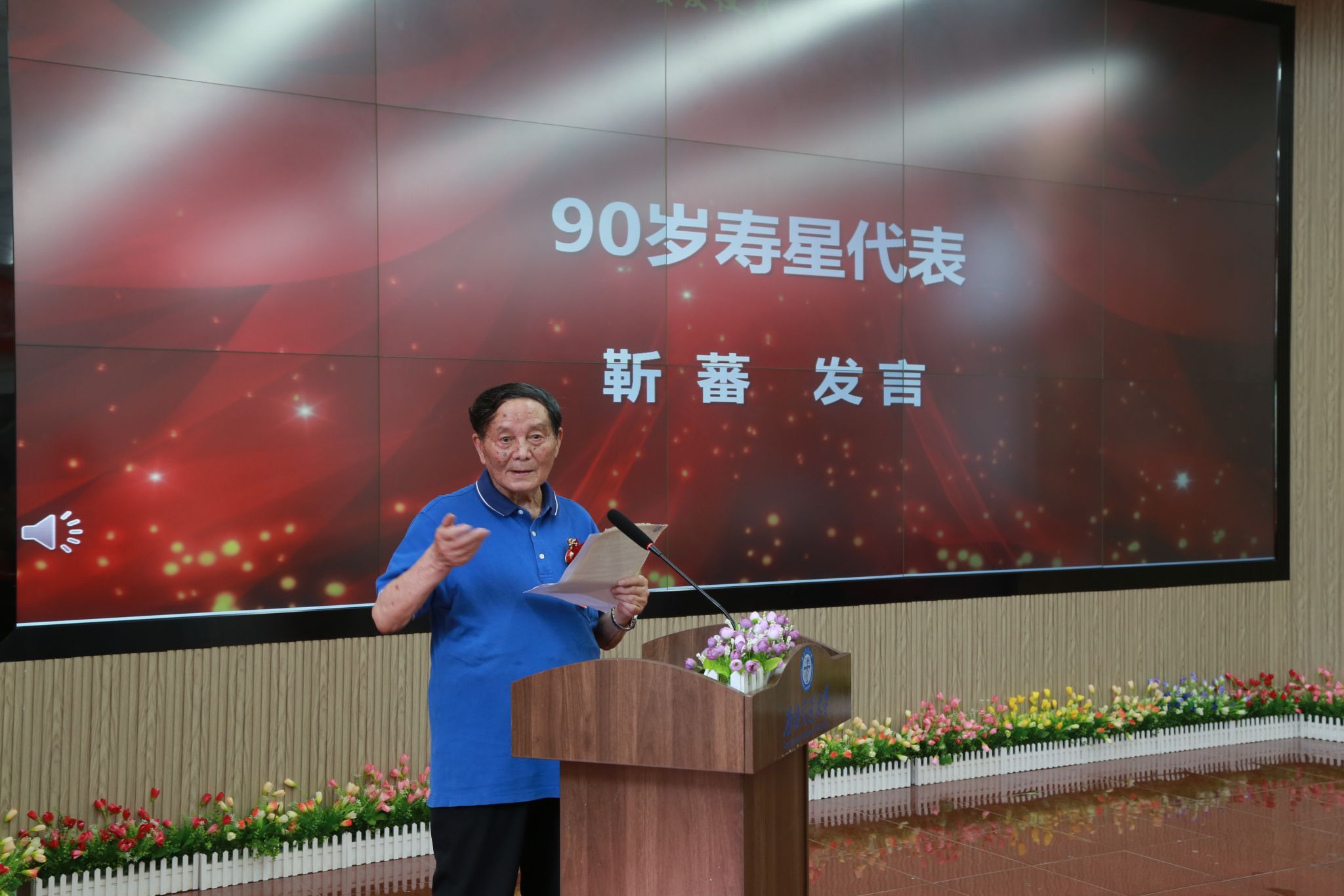 90岁的寿星代表、信息科学与技术学院靳蕃教授代表集体生日的老同志们做了发言。他对学校党委的亲切关怀和离退处组织的集体生日活动表示了深切的感谢和由衷的高兴,畅谈了祖国在中国共产党的领导下取得的重大成就,并表示老骥伏枥,志在千里,号召交大老同志们在身体健康、享受生活的同时,继续关注学校发展,为国家现代化事业建设和学校振兴升位,贡献力量。