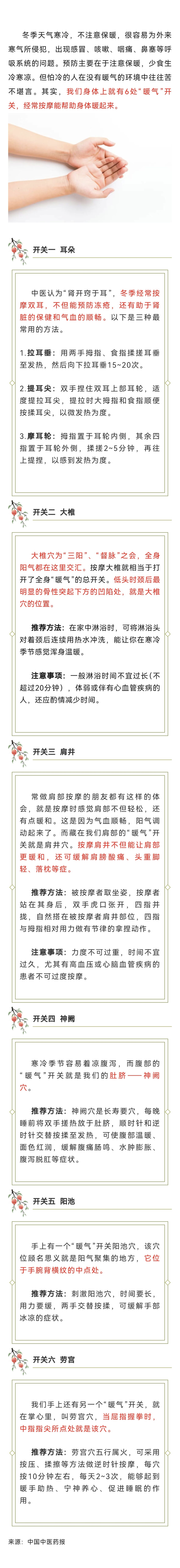 身体上有6个“暖气”开关,一般人都不知道!每天按一按,防寒保暖护健康