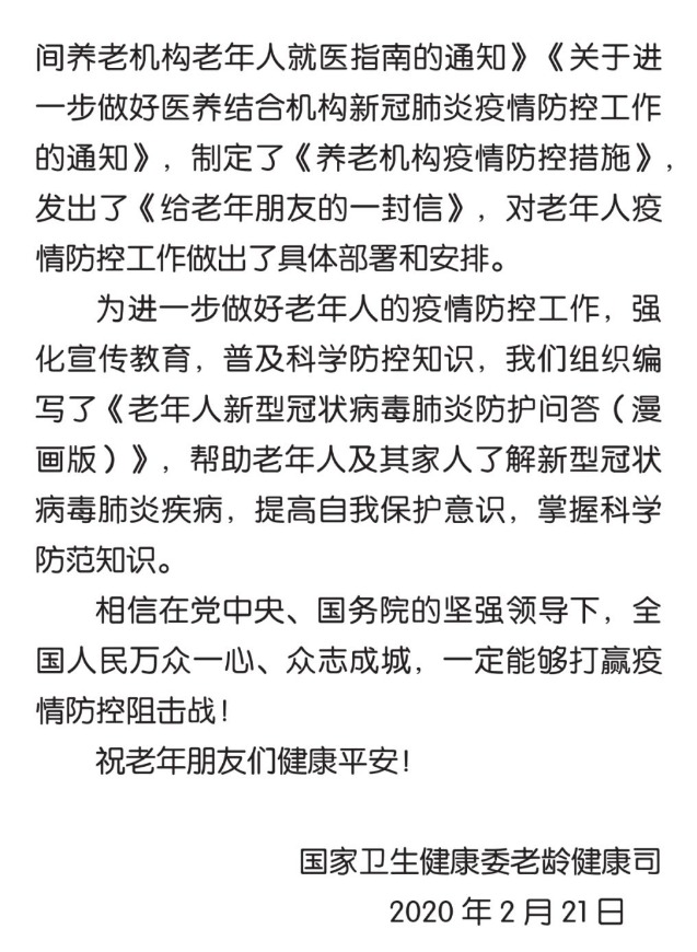 《老年人新型冠状病毒肺炎防护问答(漫画版)》