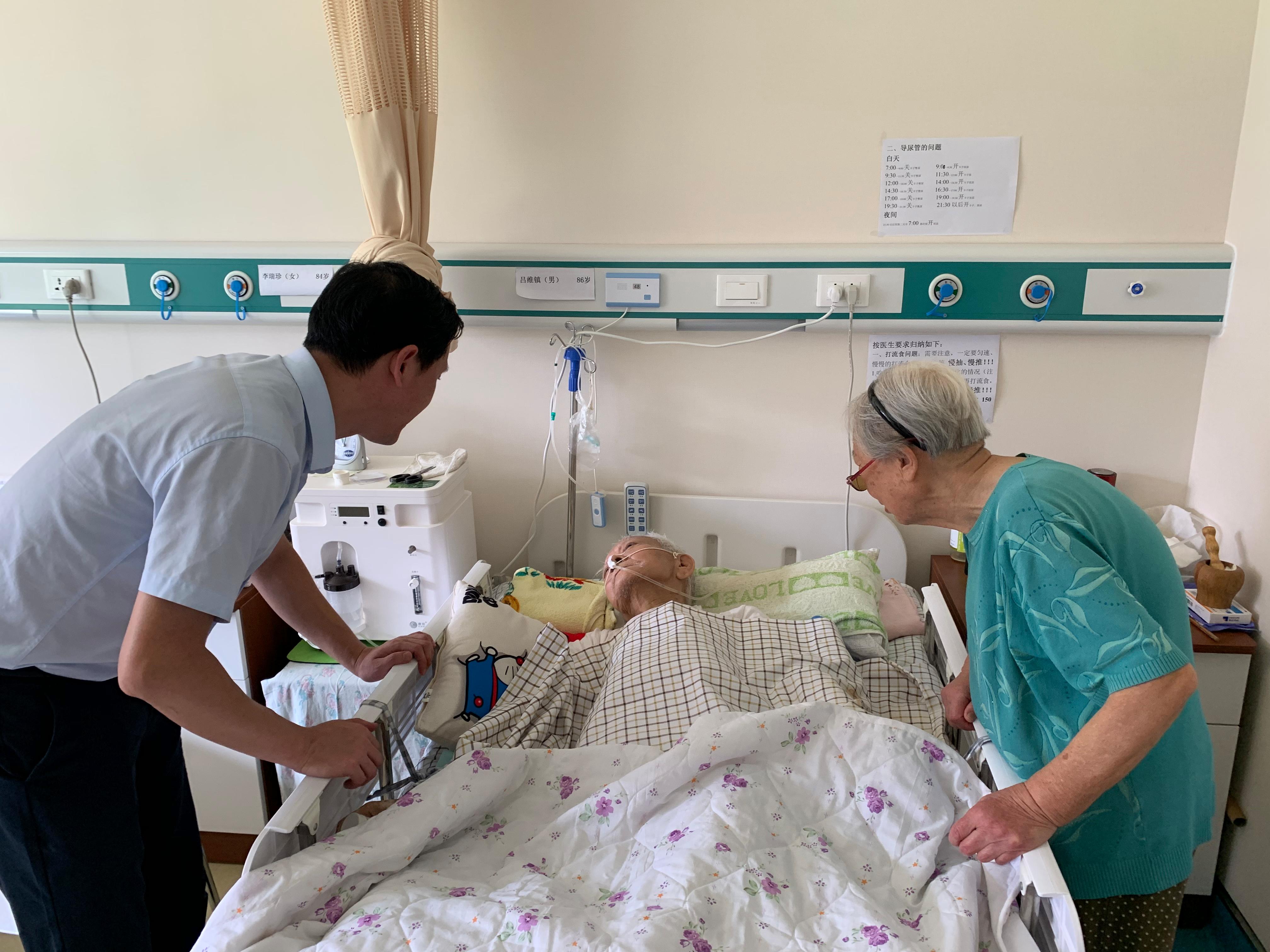 在唐山南湖老年公寓,唐院工作人员看望了原机械系吕维镇教授,吕教授子女均不在身边,自去年摔倒后卧床不起,只能住在老年公寓,由老伴照顾。针对吕教授这一类特殊情况,唐院建立了同医院、老年公寓、子女三方联动机制,第一时间更好的为吕教授解决现实困难。
