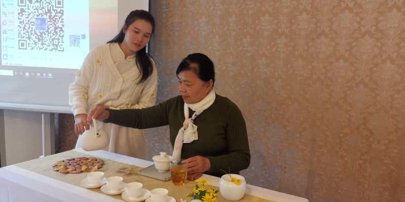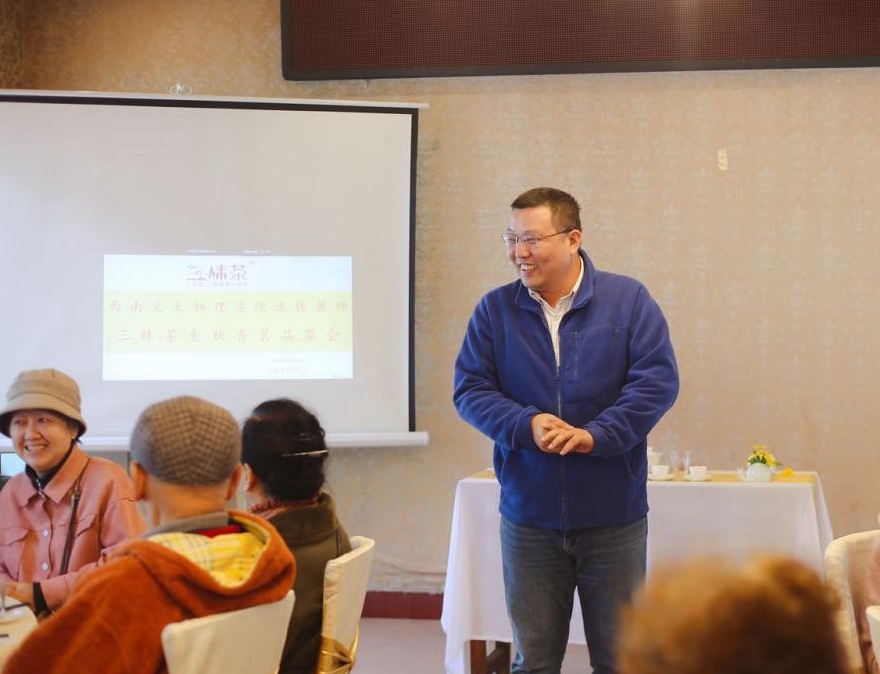 国家级茶叶评定师普茶为退休教师们讲解喝茶健康知识和茶叶存储方法
