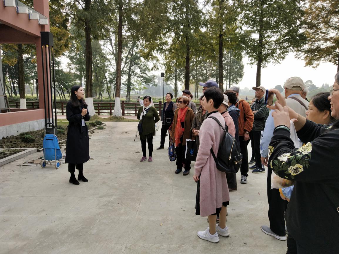 方碑社区的工作人员在为教师们讲解安靖蜀绣文化创意公园的发展情况