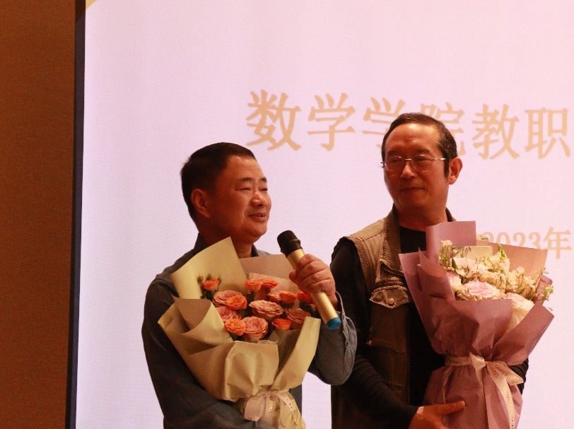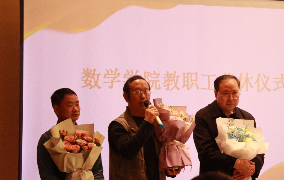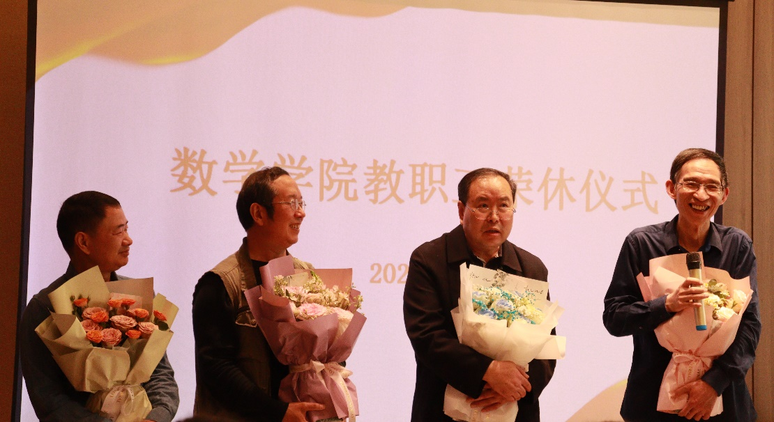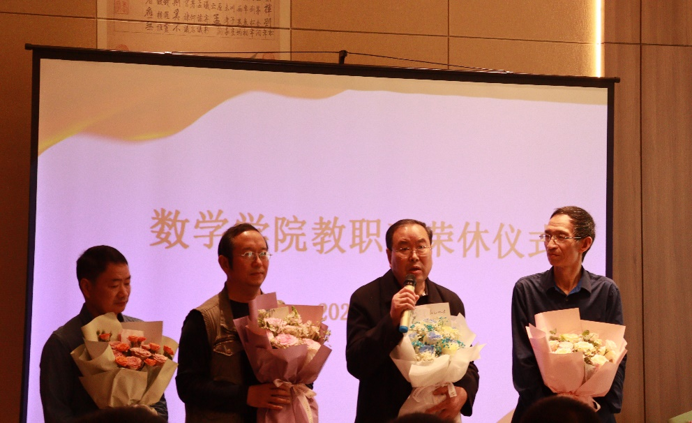 仪式由数学学院党委书记徐革主持。她代表学院向荣休教职工为学院发展作出的巨大贡献表示感谢。仪式上播放了学院为荣休教职工精心制作的风采纪念片《岁月如歌 情怀依旧》,年轻教师代表为荣休教职工送上鲜花。