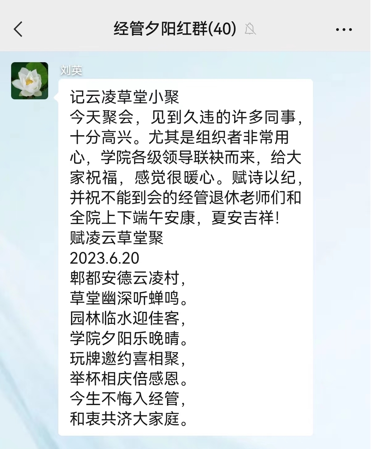 后记:会计系刘英老师在活动结束后为纪念这次活动即兴赋诗一首,她说“都是发自内心的愉悦、感动、谢意和祝福”。