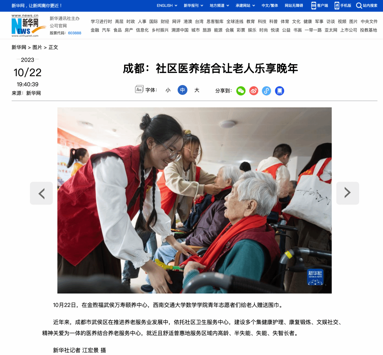 尊老敬老是中华民族的传统美德,为了让大学生深入了解社会现状,培养大学生乐于奉献,服务社会、回馈社会的积极人生观,弘扬中华民族传统美德,10月22日,在重阳节来临之际,数学2022-01班全体同学前往位于武侯区的金熙福万寿颐养中心开展尊老爱老相关的志愿服务。