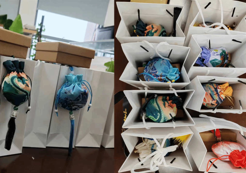 座谈结束后,李书记与俞院长为退休老师赠送重阳节的茱萸香包与桂花香包,向老师们致以节日的问候与美好的祝愿。
