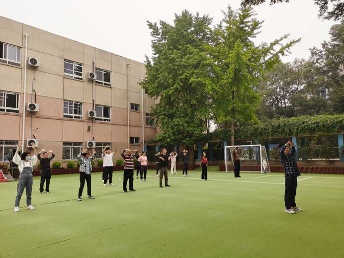 金风送爽,惠风和畅。为了锻炼身体、增强体质,丰富教职工以及离退休教职工的业余文化生活,子弟小学工会从十月初开始,每周一至周四下午准时开展八段锦、五禽戏、太极剑等培训活动。退休老师们也受邀一起参与。这个时间段,校园里,和许久不见的老朋友拥抱、畅聊,一起锻炼。快哉乐哉!