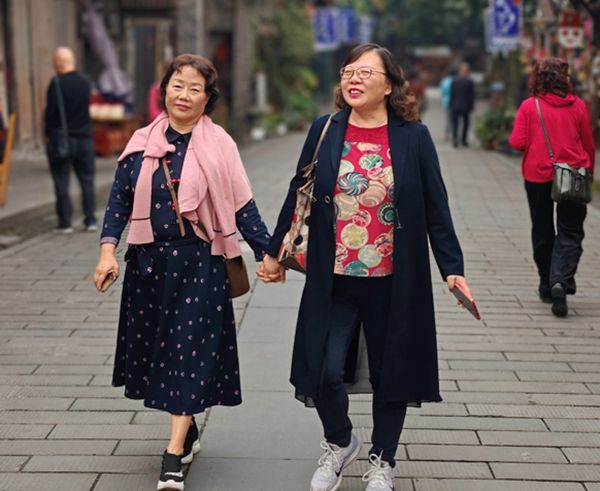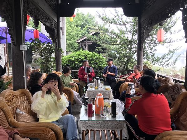 进入古镇后,老同志们沿途欣赏古镇原汁原味的古风建筑,或摆拍美照,或评点时事,一路谈笑风生,洋溢着愉悦的笑声。