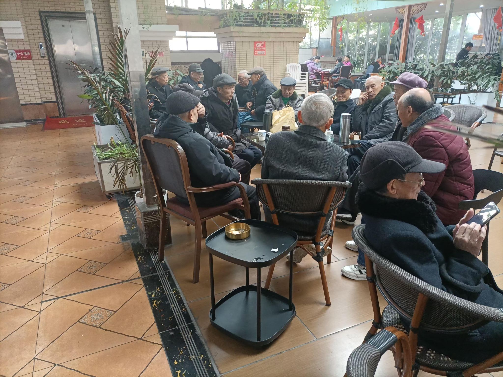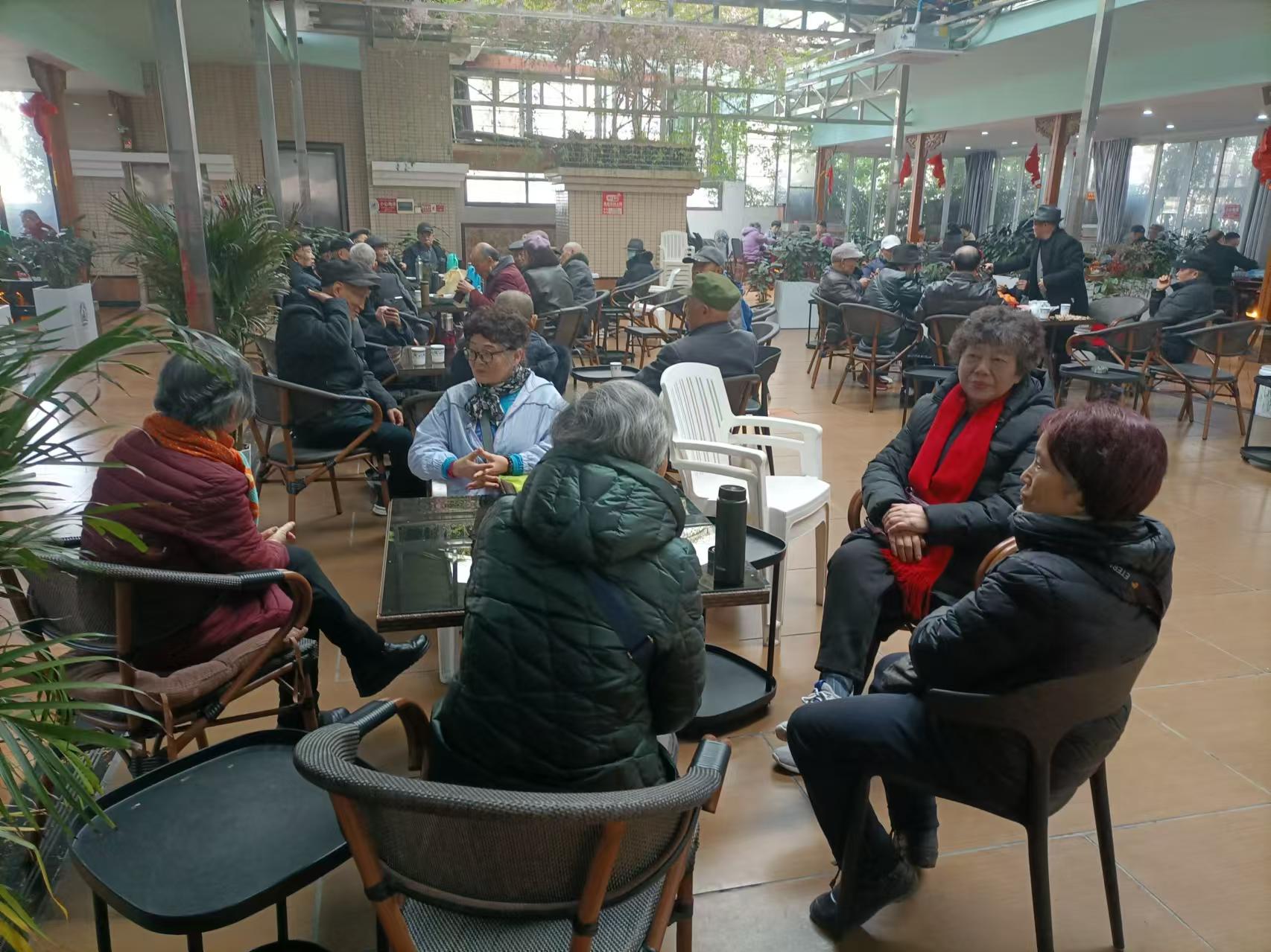 许久阴雨的天气终于过去,迎来了一个阳光明媚的日子。一大早,老同志们纷纷从四面八方来到活动现场。天气晴朗,大家心情也是欢呼雀跃的。金麒麟休闲庄内环境雅致,老友们再次相聚,非常开心。大家三三两两围坐在一起,一边喝着茶,一边聊着天,尽情的享受着相聚时光!