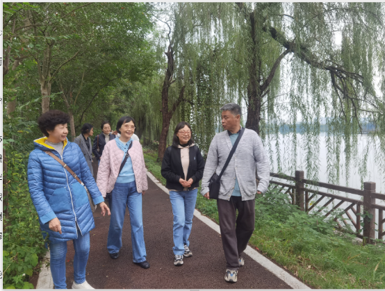最后,大家沿湖散步,欣赏秋季的湖光山色。老友相聚、宜人山色,真是心旷神怡!
