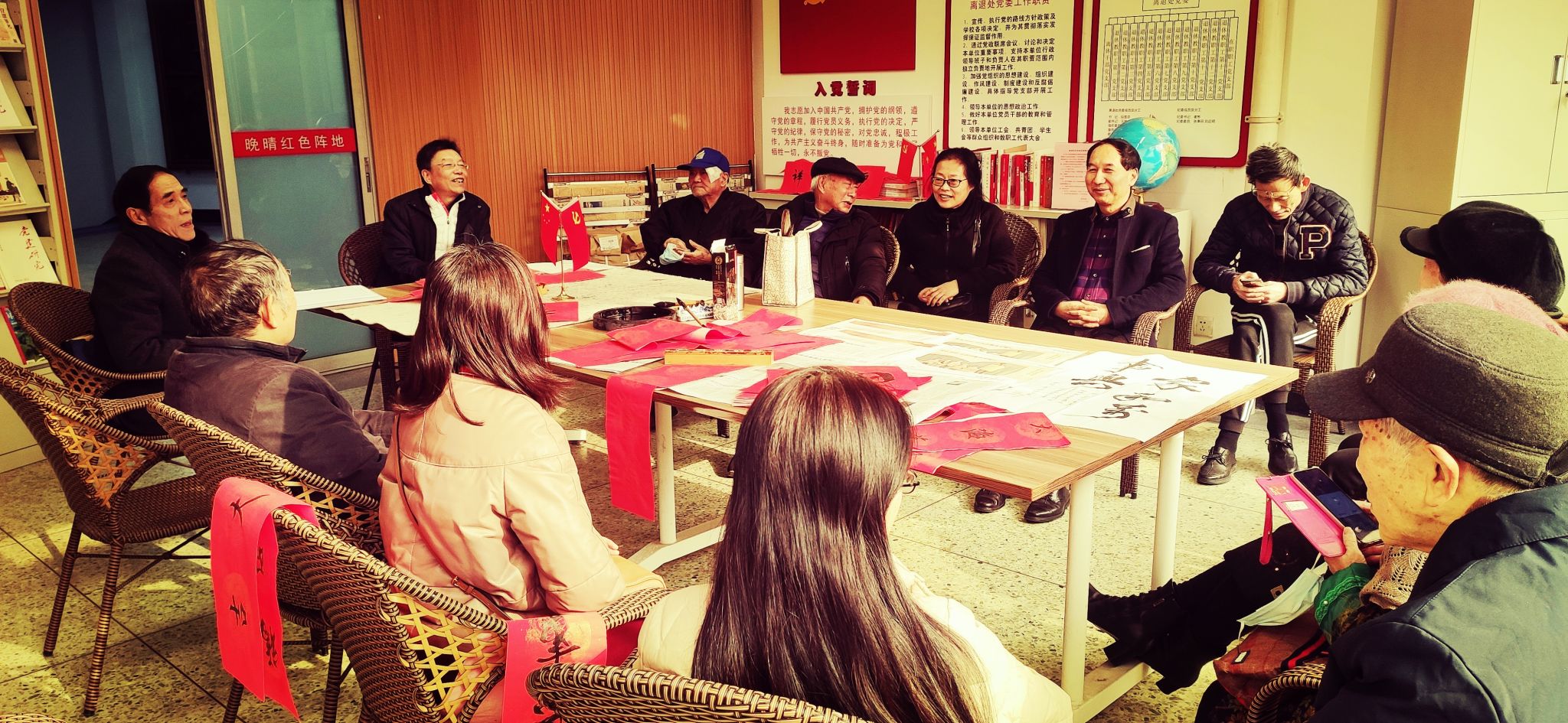 会后,还开展了“迎新春,写春联,送祝福”的联谊座谈活动。党员们表示,在新的一年里,大家将不断努力,把支部活动开展的更有成效,不忘初心,爱国爱校,为学校的发展建设继续发挥老党员的光和热。