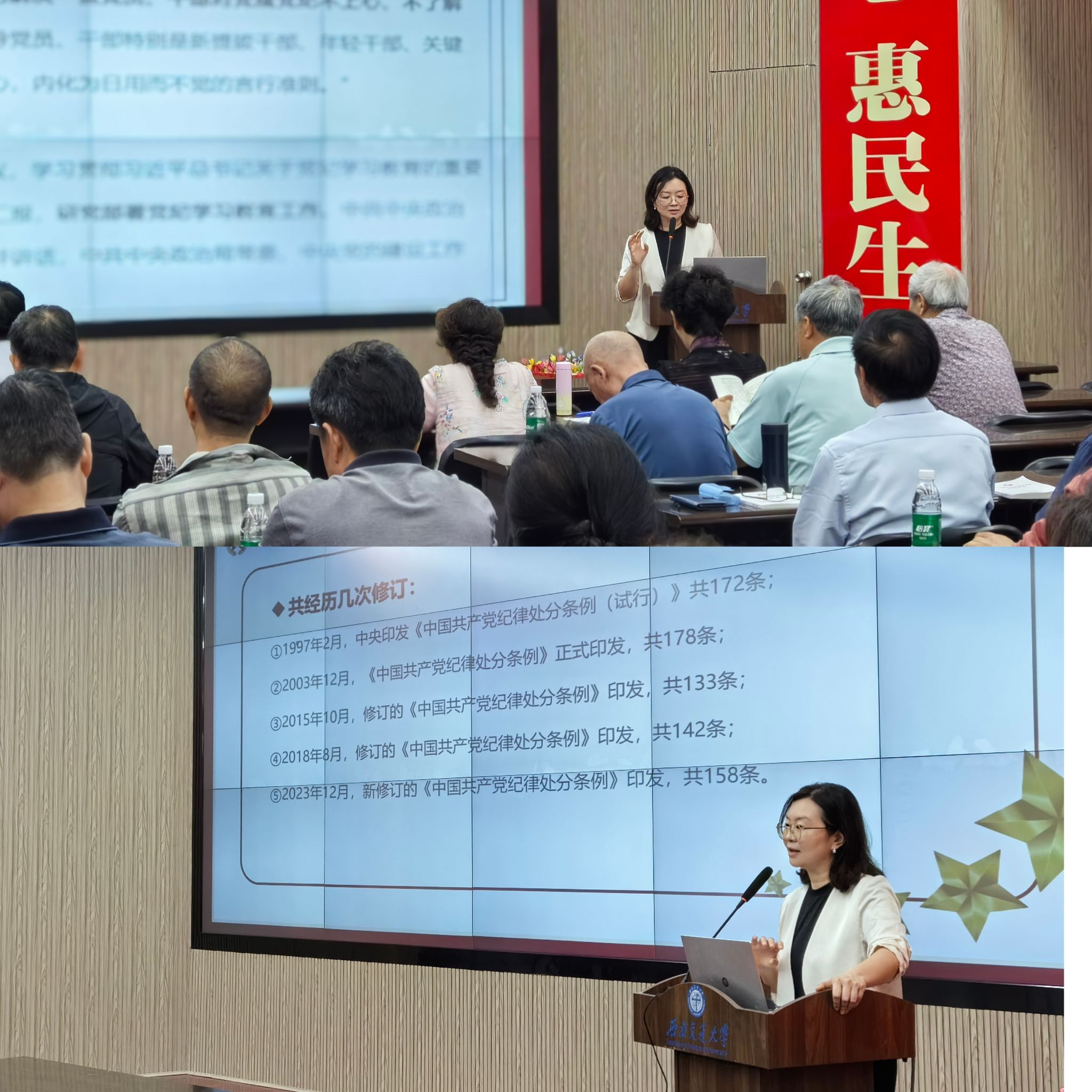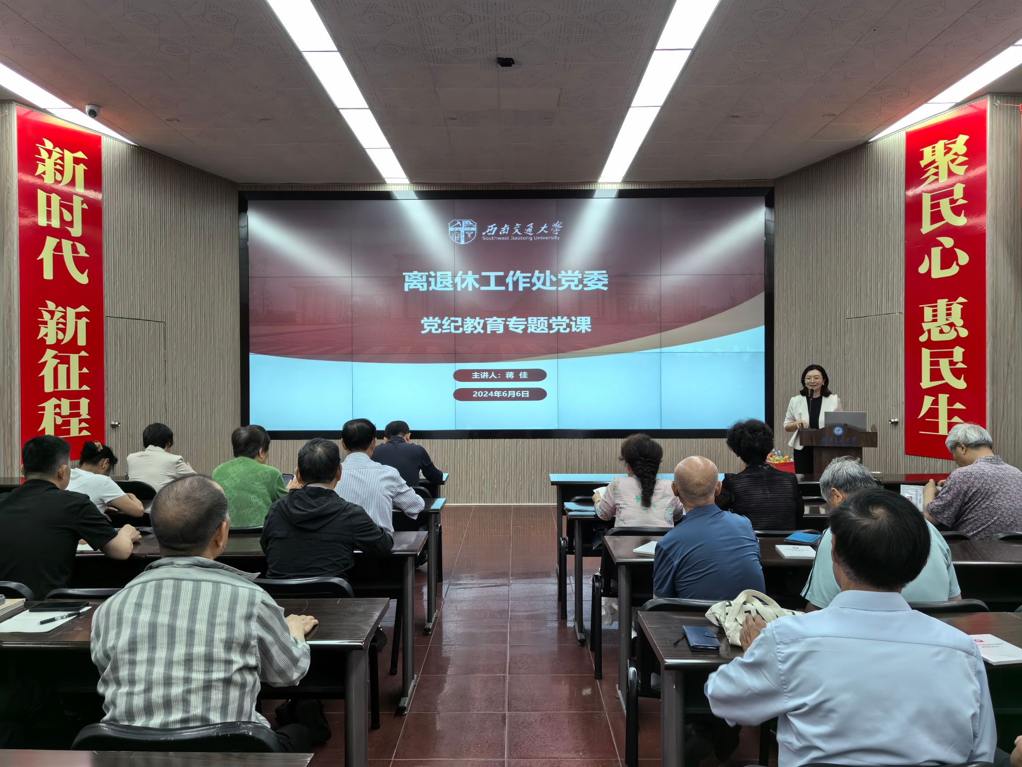 为深入学习贯彻习近平总书记关于党纪学习教育的重要讲话和重要指示精神,推动党纪学习教育走深走实,引导党员干部做到学纪、知纪、明纪、守纪。2024年6月6日上午,离退处党委组织开展党纪学习教育专题党课,学习解读《中国共产党纪律处分条例》。处领导班子成员、党委委员、纪委委员、各退休党支部书记及党员代表、在职党支部全体党员同志参加了专题党课。