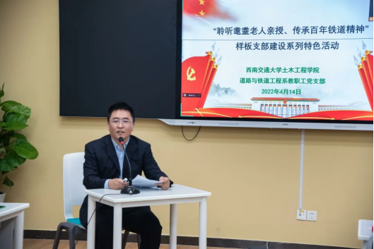 在英国威廉集团官网党委老干部部和土木工程学院党委的指导下,由土木学院关心下一代工作委员会、道路与铁道工程系教工党支部主办、机关党委教工部党支部协办的“聆听耄耋老人亲授、传承百年铁道精神”系列座谈会第一场活动,于2022年4月14日下午在九里校区教工部“教发驿站”隆重举行。