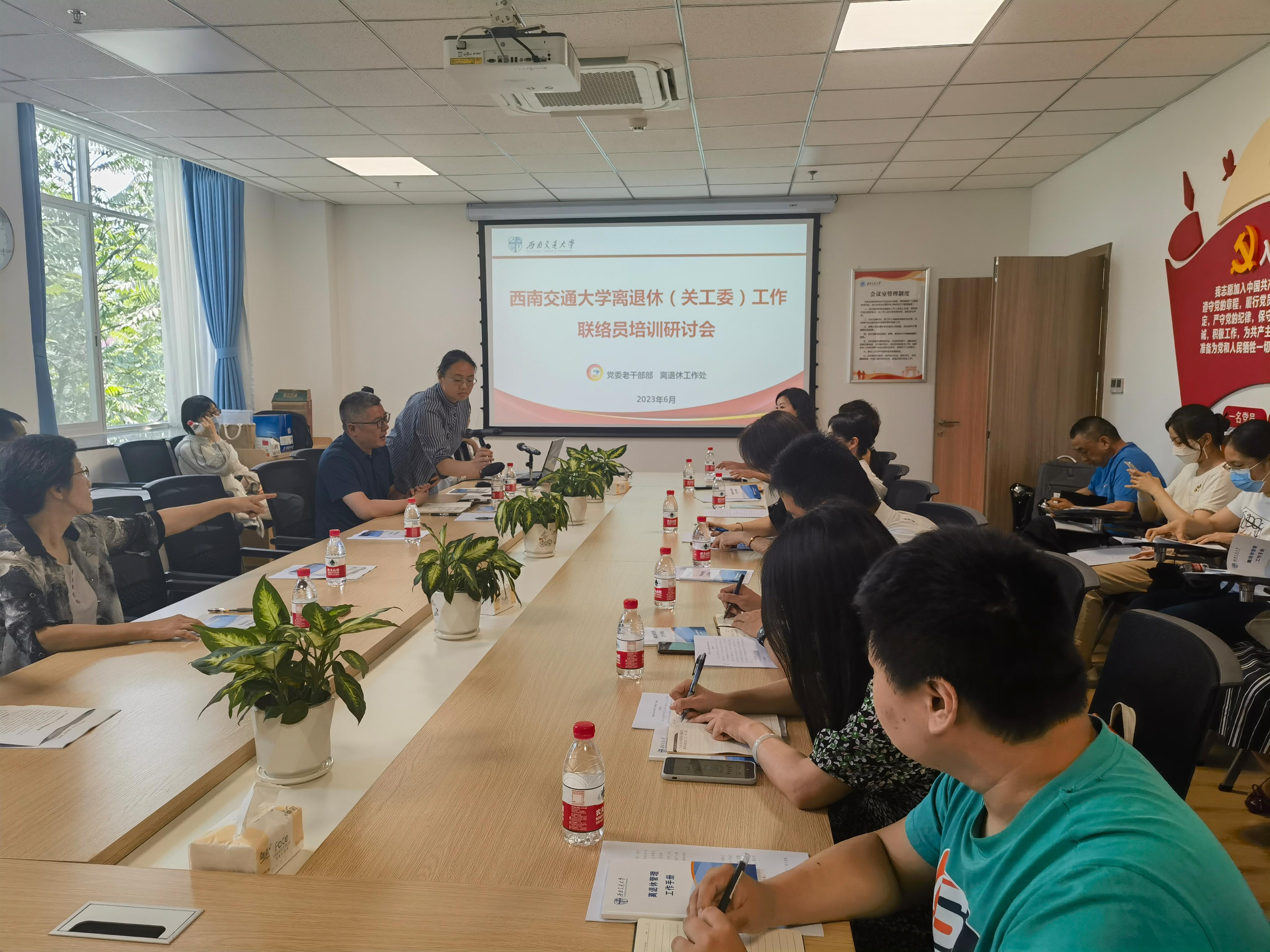 2023年6月7日下午,离退休工作处在犀浦校区老年活动中心会议室举办了学校离退(关工委)工作联络员培训研讨会。本次培训交流会主要目的一是对新进二级单位联络员进行培训,加快熟悉了解离退工作;二是搭建工作交流平台,互学共进,提升学校老龄工作水平;三是加强队伍感情交流,营造学校良好老龄工作环境。各二级单位离退工作联络员和关工委工作联络员参加了培训和研讨,离退处处长杨德友、副处长李彤梅参加会议。会议由离退处副处长李雪飞主持。
