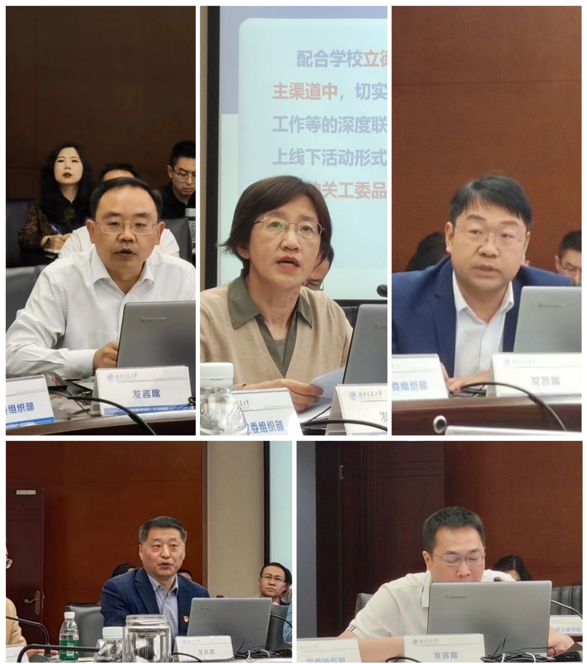 关工委秘书长杨德友汇报了《2023年关工委工作总结》和《2024年关工委工作要点》。他指出,2023年学校关工委工作取得了很多新进展新突破,创新构建了统筹学校关工委活动的“铸魂、承唐、启智、尚美、乐心、青蓝”六大工程,形成具有交大特色的关工委“五五六工程”工作体系;面向二级关工委,首次开展了“一院一品”创建活动;新建“晚晴讲师团”参与各分党校开展入党积极分子培训工作;在读懂中国活动中,学校关工委推荐的《逐梦太空》微视频,获教育部关工委微视频优秀奖;动员组织6名退休教师参与高校银龄教师支援西部计划;在四川省关工委干部培训会上,刘学信副主任代表学校关工委在会上作了典型经验发言2024年学校关工委将继续深入推进实施“五五六工程”,着力在理论学习、自身建设、理想信念教育、品牌建设、理论与实践课题研究等方面下功夫,不断提高关工委的工作质量与工作效果。随后,关工委副秘书长李彤梅部署了“一院一品”和“读懂中国”工作。今年学校关工委积极响应教育部号召,先行先试,在关工委增设学生委员,增强工作的针对性、有效性、实效性,校团委书记武俊对此项工作进行了说明。“晚晴讲师团”教师代表葛永明和机械工程学院代表李鑫作了经验交流发言。